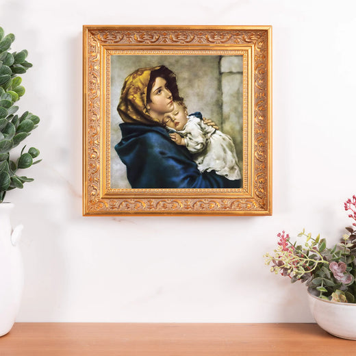 This framed print is a timeless tribute to motherly love and divine care, making it a treasured addition to any home, especially where family and faith are deeply valued.