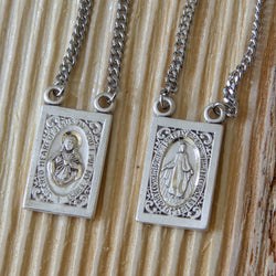 Sterling Scapular with Our Lady of Mt. Carmel & Sacred Heart Medals