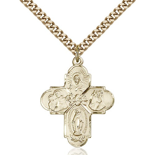 This 14kt Gold Filled 4-Way Pendant offers the classic elegance of solid 14 Karat Gold at a more accessible price. Measuring 1 x 7/8 inches, it hangs from a durable 24" stainless gold heavy curb chain. Hand-crafted in the U.S.A., this pendant promises lasting beauty as it is guaranteed not to tarnish.
