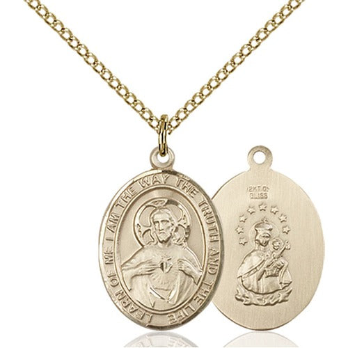 The 14kt Gold Filled Scapular Pendant exudes elegance with the look and feel of solid 14 Karat Gold. Measuring 3/4 x 1/2 inches, it comes on an 18" lite curb chain with a secure clasp. Hand-made in the U.S.A. and guaranteed not to tarnish, it offers luxury at a fraction of the cost.