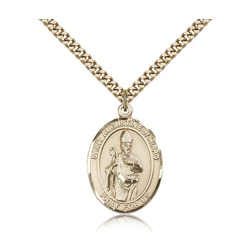 14kt Gold Filled St. Augustine of Hippo Pendant on a 24" Stainless Gold Heavy Curb Chain with clasp. 14 Karat Gold Filled. The look and feel of solid 14 Karat Gold at a fraction of the price. Size: 1 x 3/4. Patronage: Brewers/Theologians. Made in the USA.