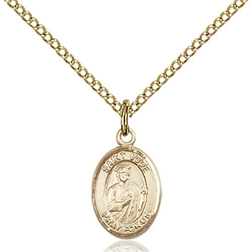 14kt Gold Filled St. Jude Thaddeus Pendant on a 14kt Gold Filled Lite Curb, 18" Chain with clasp. The look and feel of solid 14 karat gold at a fraction of the price. *Please note petite size: 1/2 x 1/4 inches, Patronage: Desperate Situations