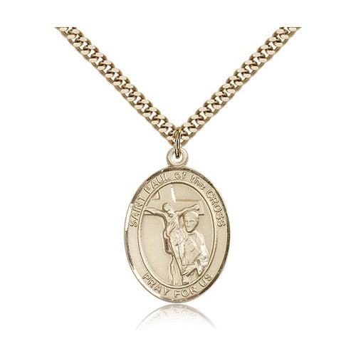 14kt Gold Filled St. Paul of the Cross Pendant on a 24'' Stainless Gold Heavy Curb Chain with clasp. 14kt Gold Filled, the look and feel of solid 14klt Gold at a fraction of the price. Size: 1 x 3/4 inches.