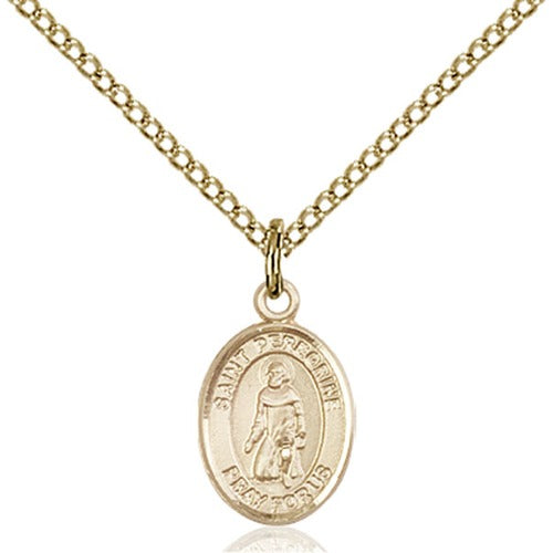 The 14kt Gold Filled St. Peregrine Laziosi Petite Pendant offers an elegant look at a fraction of the cost of solid gold. Measuring 1/2 x 1/4 inches, it comes with an 18" lite curb chain. Hand-made in the U.S.A., the pendant is tarnish-resistant and honors St. Peregrine, patron of those with cancer or running sores.