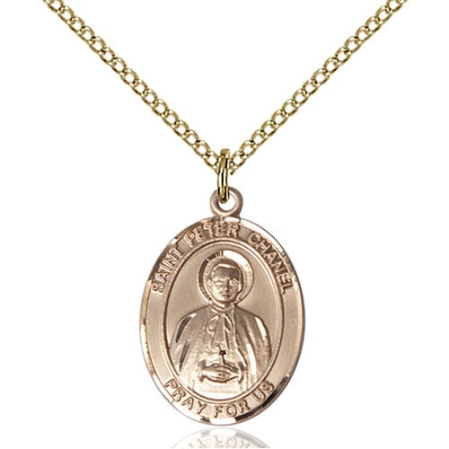 This exquisite 14kt Gold Filled St. Peter Chanel Pendant is elegantly paired with an 18-inch gold-filled lite curb chain. With the luster of solid 14k gold at an affordable price, it measures 3/4 x 1/2 inches and honors the patronage of World Youth Day. Handcrafted in the U.S.A., this pendant is guaranteed not to tarnish, offering lasting beauty and devotion.