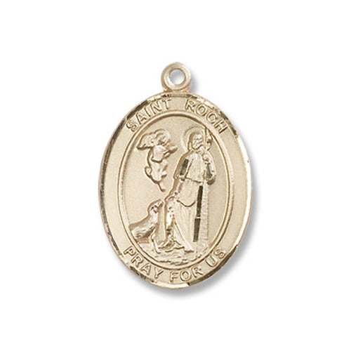 14kt Gold Filled St. Roch pendant, comes on an 18" 14kt gold-filled lite curb chain. The pendant measures 3/4 x 1/2" and comes gift boxed.