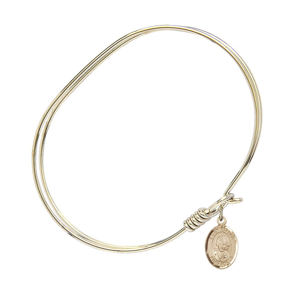 Adult 7" Oval Gold Plated Bangle Bracelet with St. Gianna Beretta Molla Medal Charm