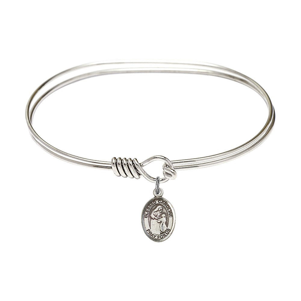 Adult 7" Oval Rhodium Plated Bangle Bracelet with Blessed Caroline Gerhardinger Medal Charm