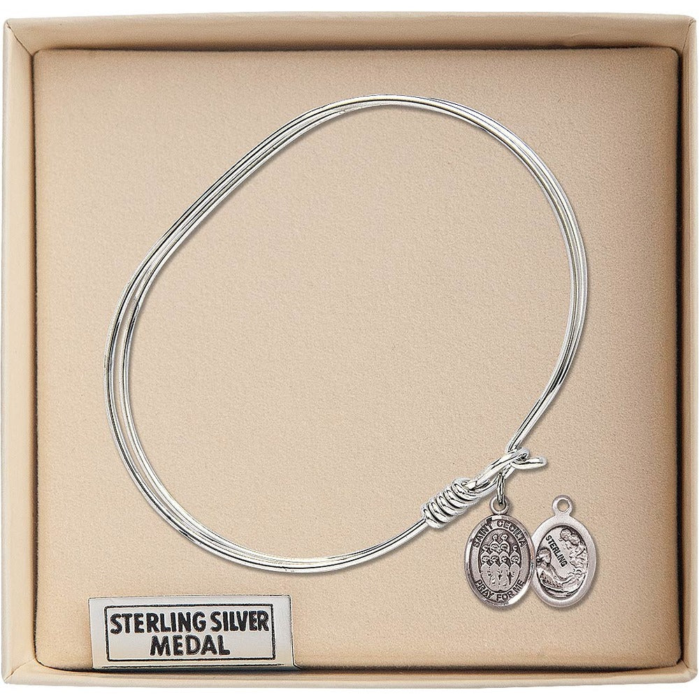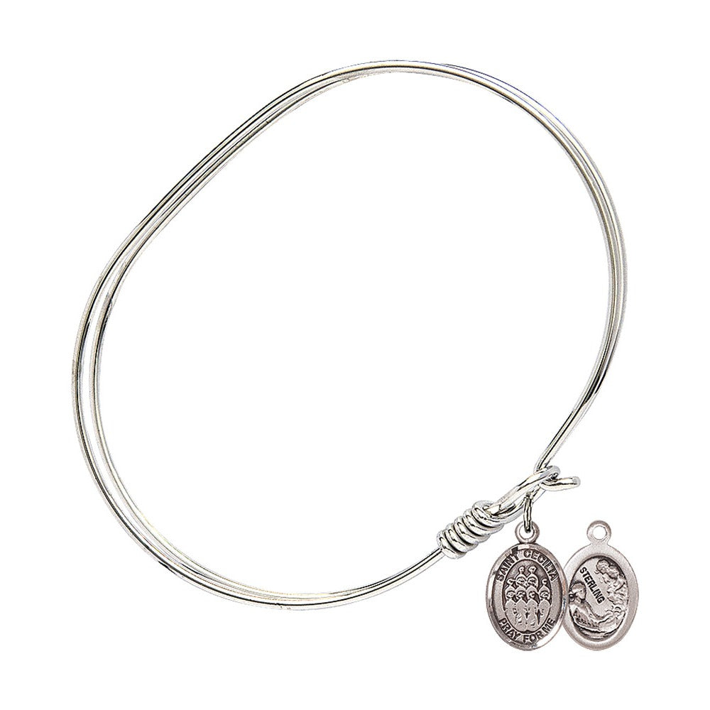 Adult 7" Oval Rhodium Plated Bangle Bracelet with St. Cecilia / Choir Medal Charm