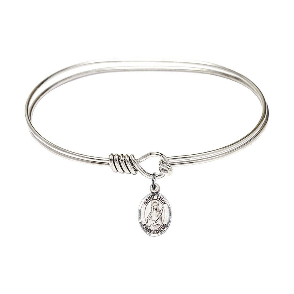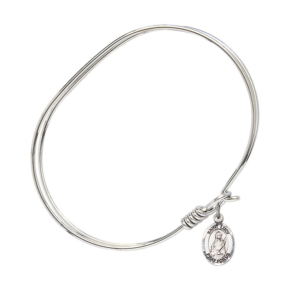 Adult 7" Oval Rhodium Plated Bangle Bracelet with St. Lucy Medal Charm