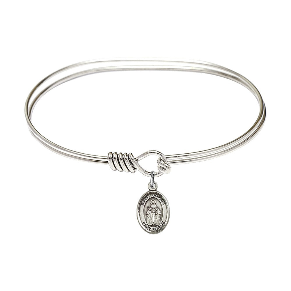 7" Oval Rhodium Plated Eye Hook Bangle Bracelet with a Sterling Silver St. Sophia medal charm . Feast Day in the USA is August 1st.