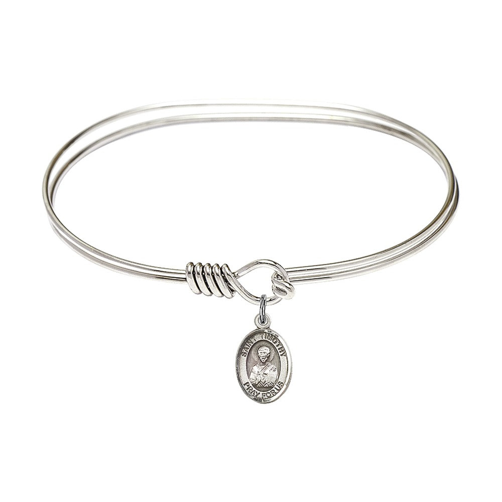 Adult 7" Oval Rhodium Plated Bangle Bracelet with St. Timothy Medal Charm