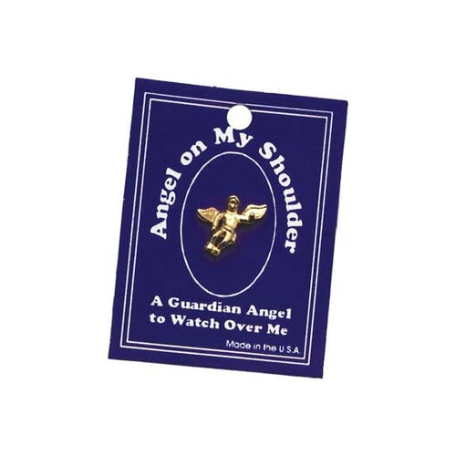 This beautifully crafted gold-tone Angel on My Shoulder Pin, made in the USA, serves as a charming reminder of divine protection. Attached to a card that reads, "Angel on my Shoulder - A Guardian Angel to watch over me," this delicate 1/2" pin makes for a thoughtful gift or personal token of faith.