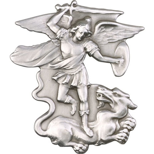 Antique Silver St. Michael Visor Clip, Size: 2 x 1 3/4 inches.