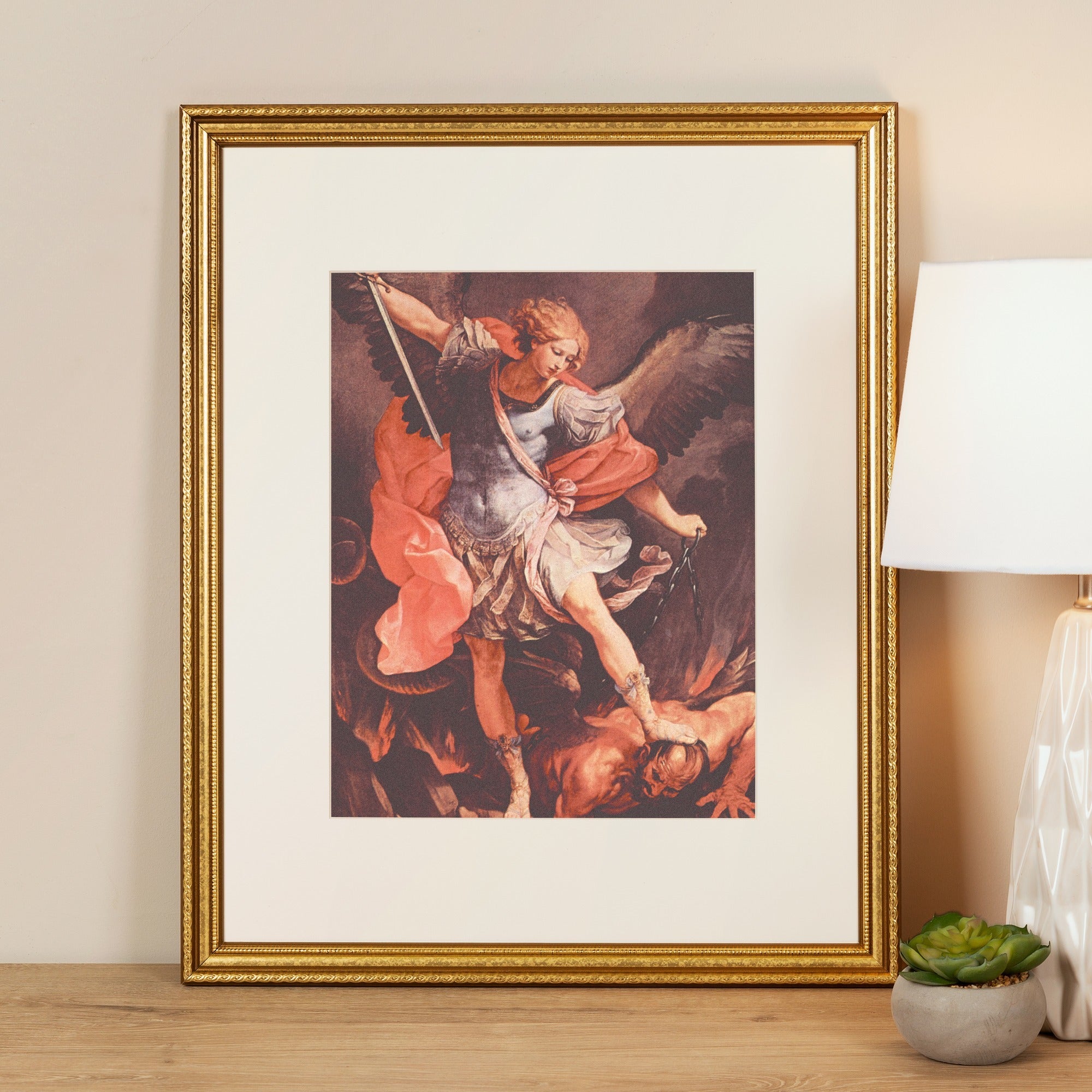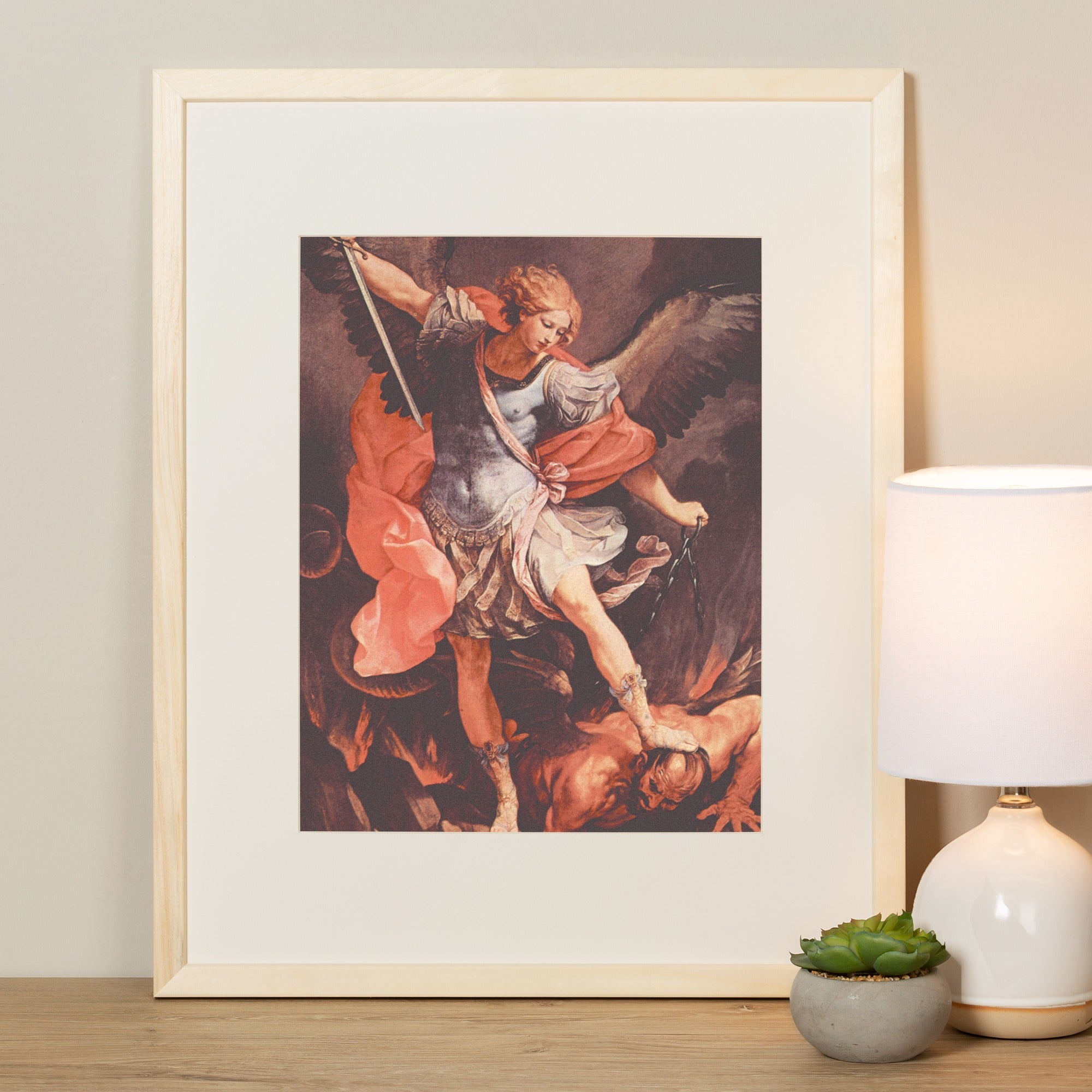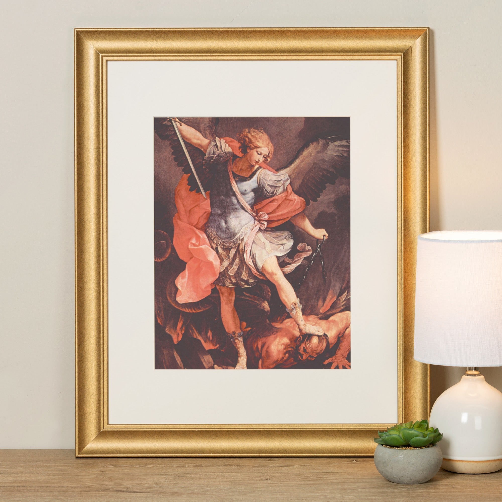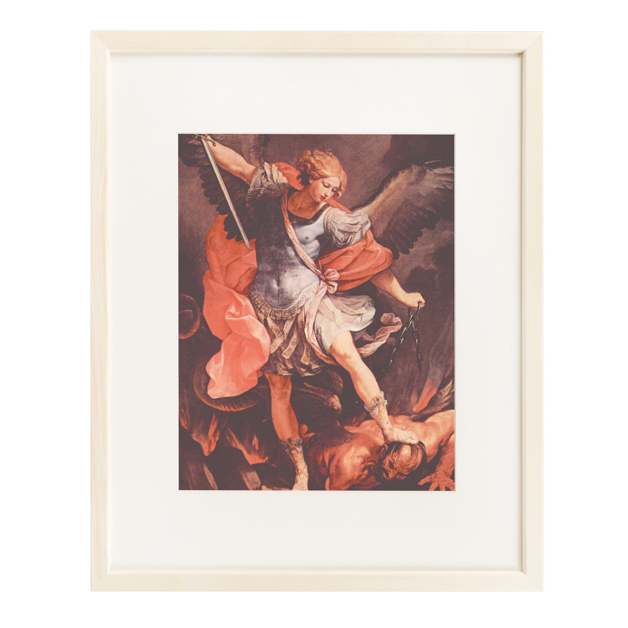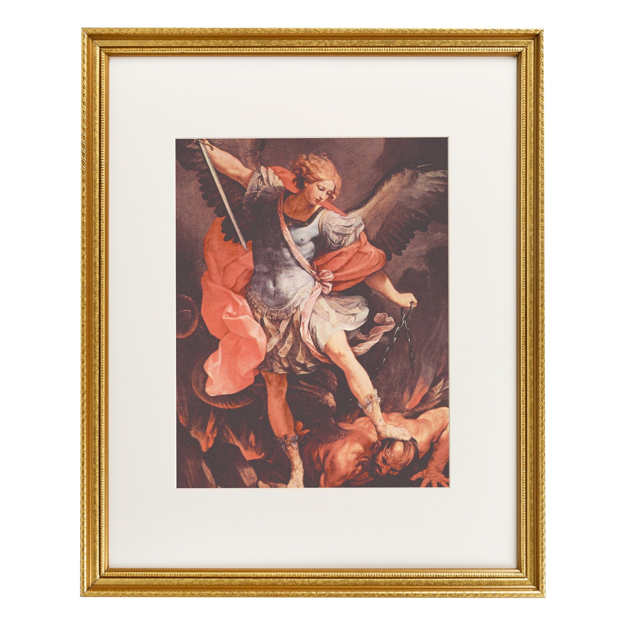 Guido Reni's "Archangel Michael" depicts the archangel stamping out the devil as he protects and defends against evil. Display this piece in a prominent place, and ask St. Michael the Archangel to be the protector of your home and family. A memorable image of St. Michael for home, office, or school. Available in three frame styles.