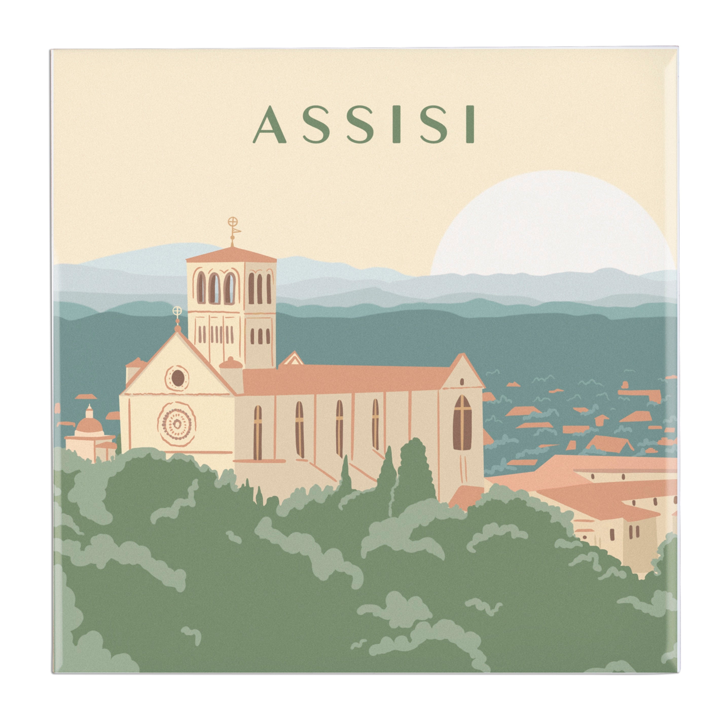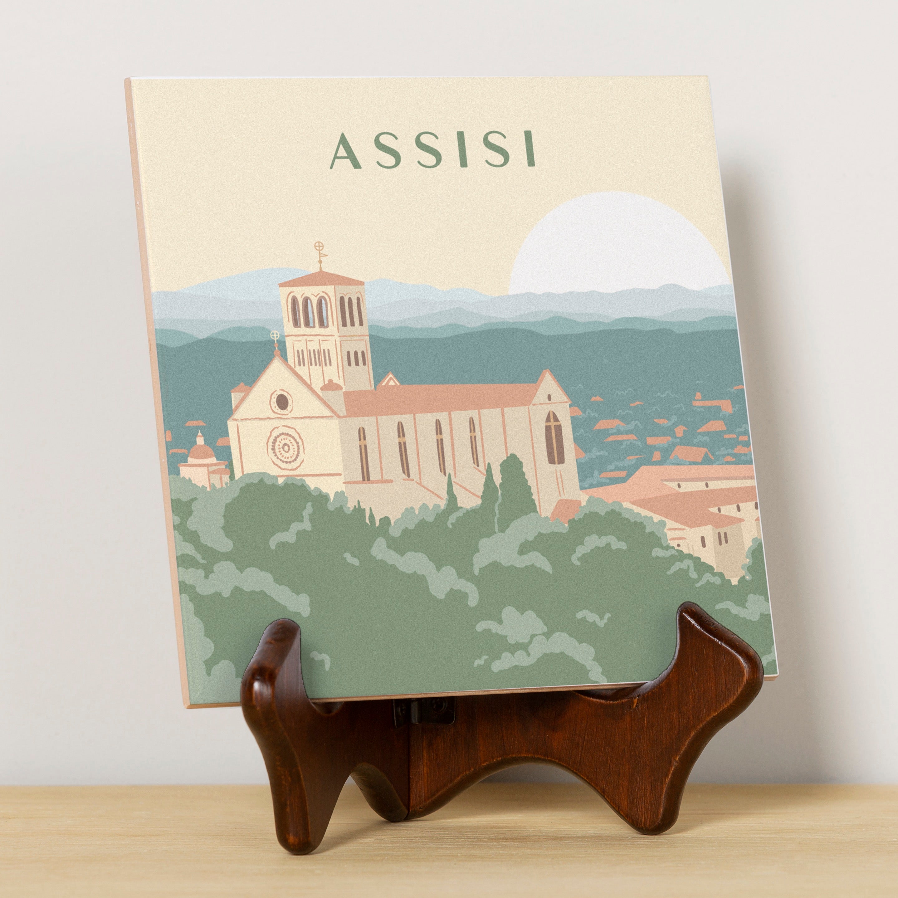 This stunning ceramic tile features a beautiful illustration of the Basilica of St. Francis of Assisi, a renowned 13th-century pilgrimage site. Perfect as a thoughtful gift for those devoted to St. Francis, it serves as a decorative piece or useful trivet. Measuring 6"x6", it includes rubber feet for stability. Designed exclusively by The Catholic Company. Easel sold separately.