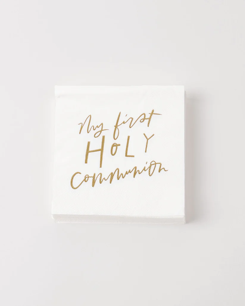 My First Holy Communion Cocktail Napkins are a special way to commemorate the First Holy Eucharist.  They are perfectly sized for appetizers, drinks, and of course - cake! White with bold and stylized script reading My First Holy Communion, they will add to the beauty of your table and coordinate with any colors or special decor. A wonderful addition to the First Communion party, to help you celebrate this life-changing and life-giving sacrament in style.