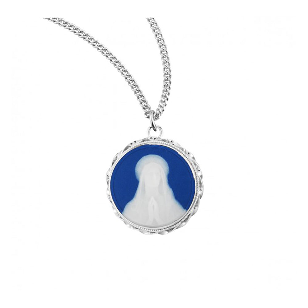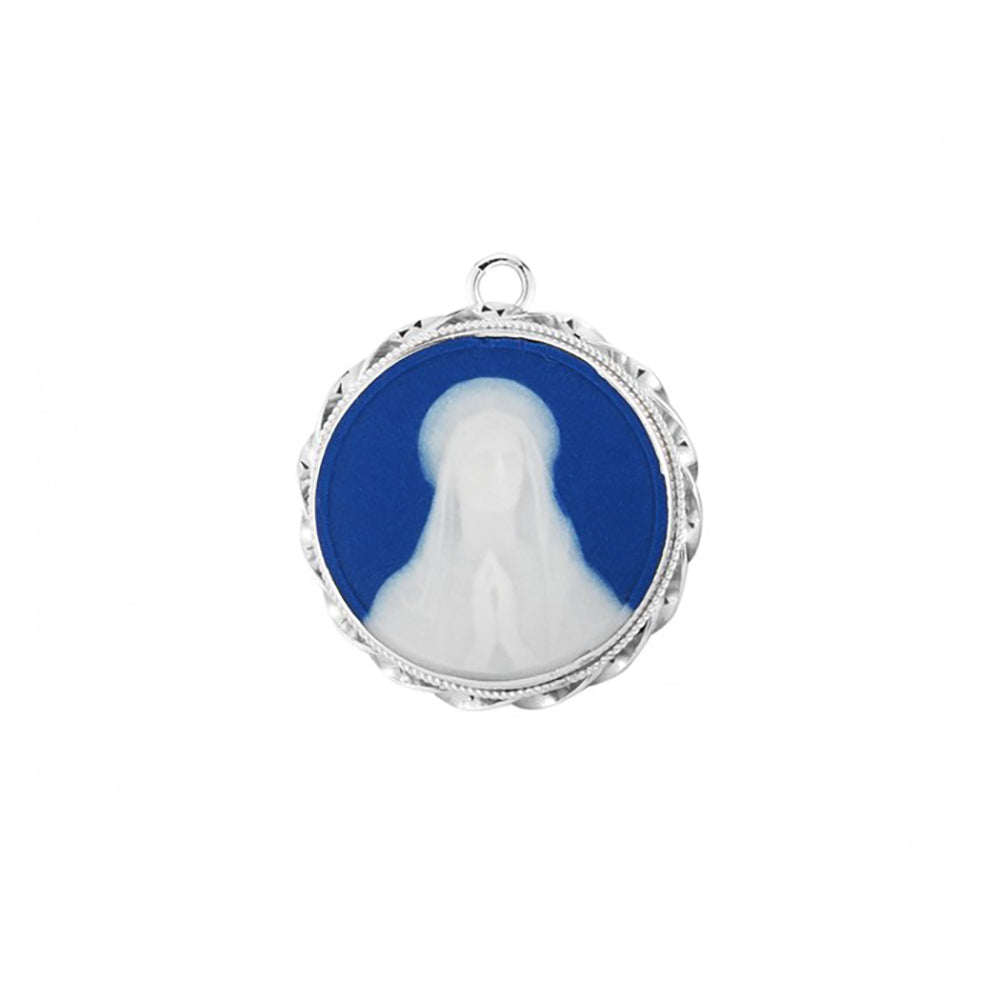 Blue Cameo Our Lady of Lourdes Silver Necklace