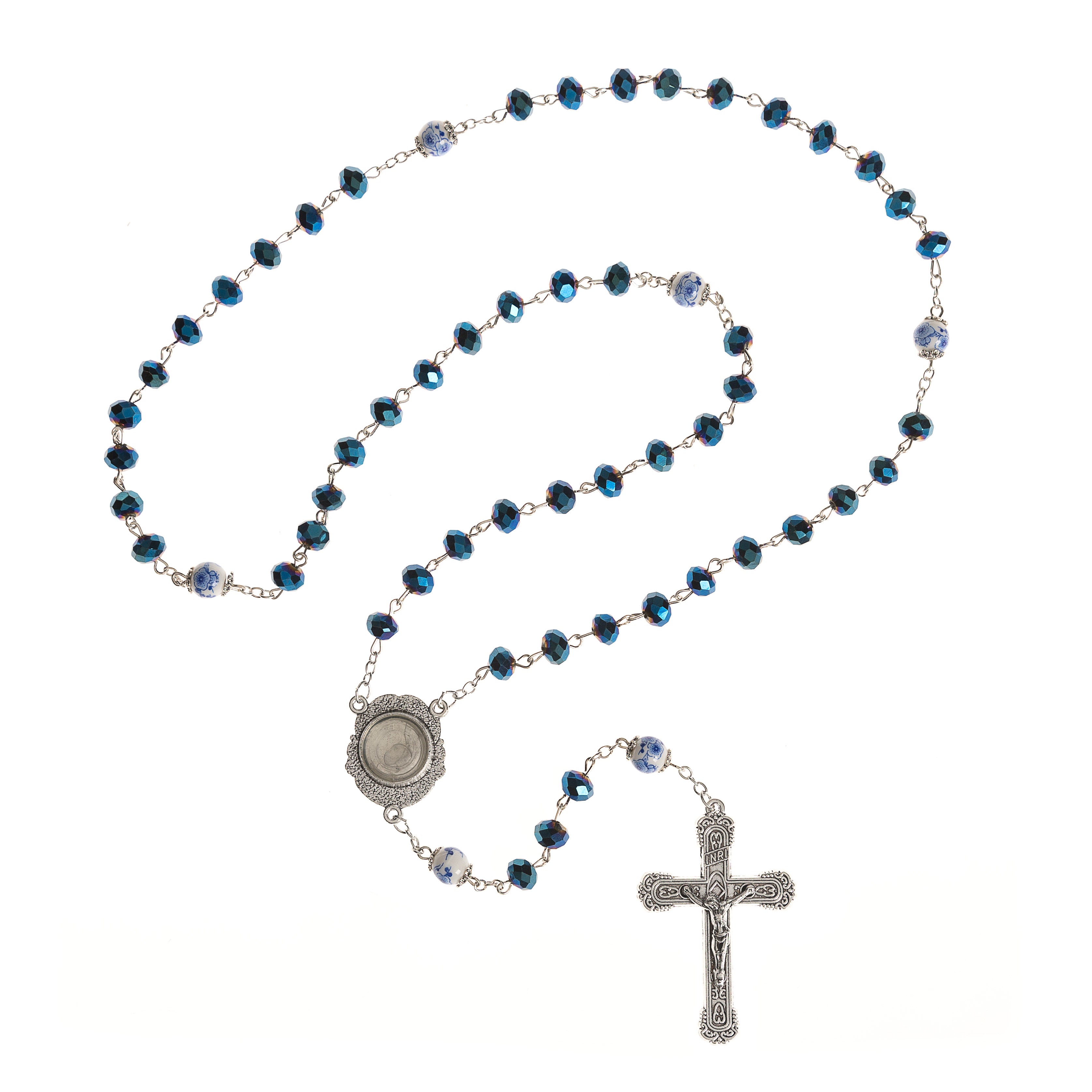 - Brilliant blue sun-cut crystal Hail Mary beads