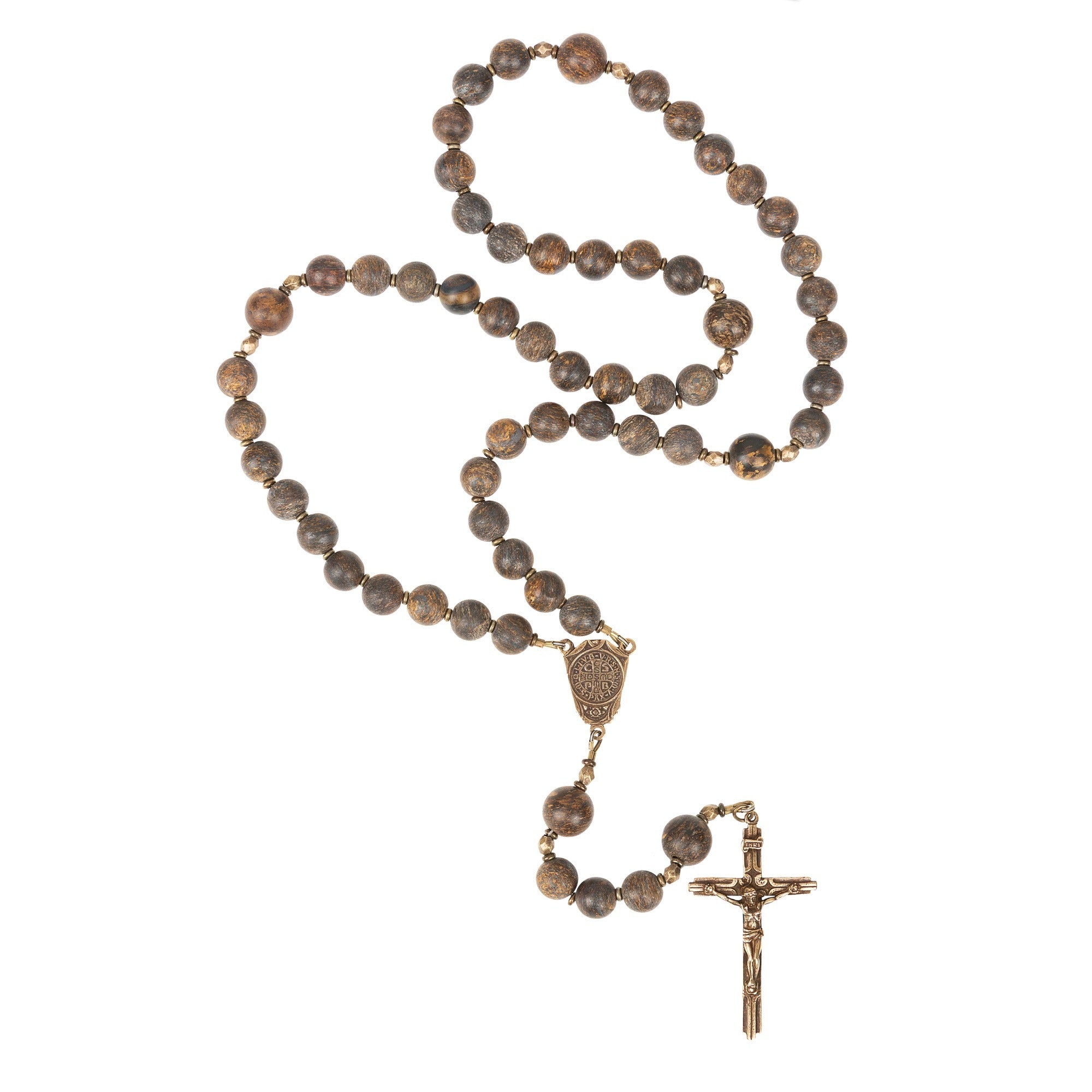 The Bronzite St. Benedict Rosary is a stunning piece handcrafted exclusively by The Catholic Company. Made with smooth, precious bronzite beads and antique bronze detailing, it reflects a 1,500-year Benedictine tradition. Accompanied by a prayer card outlining the 20 mysteries, it serves as a timeless gift for any occasion, enhancing your spiritual journey. Personalization is available on a gold charm.