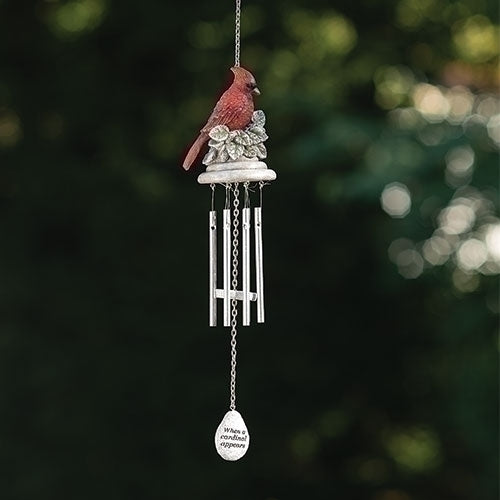 The Cardinal Memorial Windchime is a serene and meaningful sympathy gift featuring a cardinal and teardrop design. Ideal for those grieving, it can be placed outdoors to bring comfort. The chime, with its loving inscription and symbolic cardinal, serves as a lasting reminder of love and eternal inheritance. Uplift spirits with this heartfelt gift—"When a cardinal appears, an Angel is near."