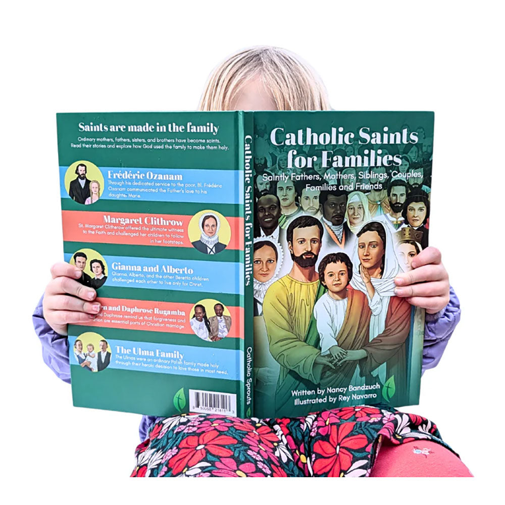 "Catholic Saints for Families" by Nancy Bandzuch is an inspiring hardcover book featuring stories and biographies of 35 saints, showcasing how their families played a vital role in their holiness. With vibrant portraits and prayers for each saint's intercession, this 145-page treasure is perfect for family reading, illustrating how God can sanctify your own family journey.