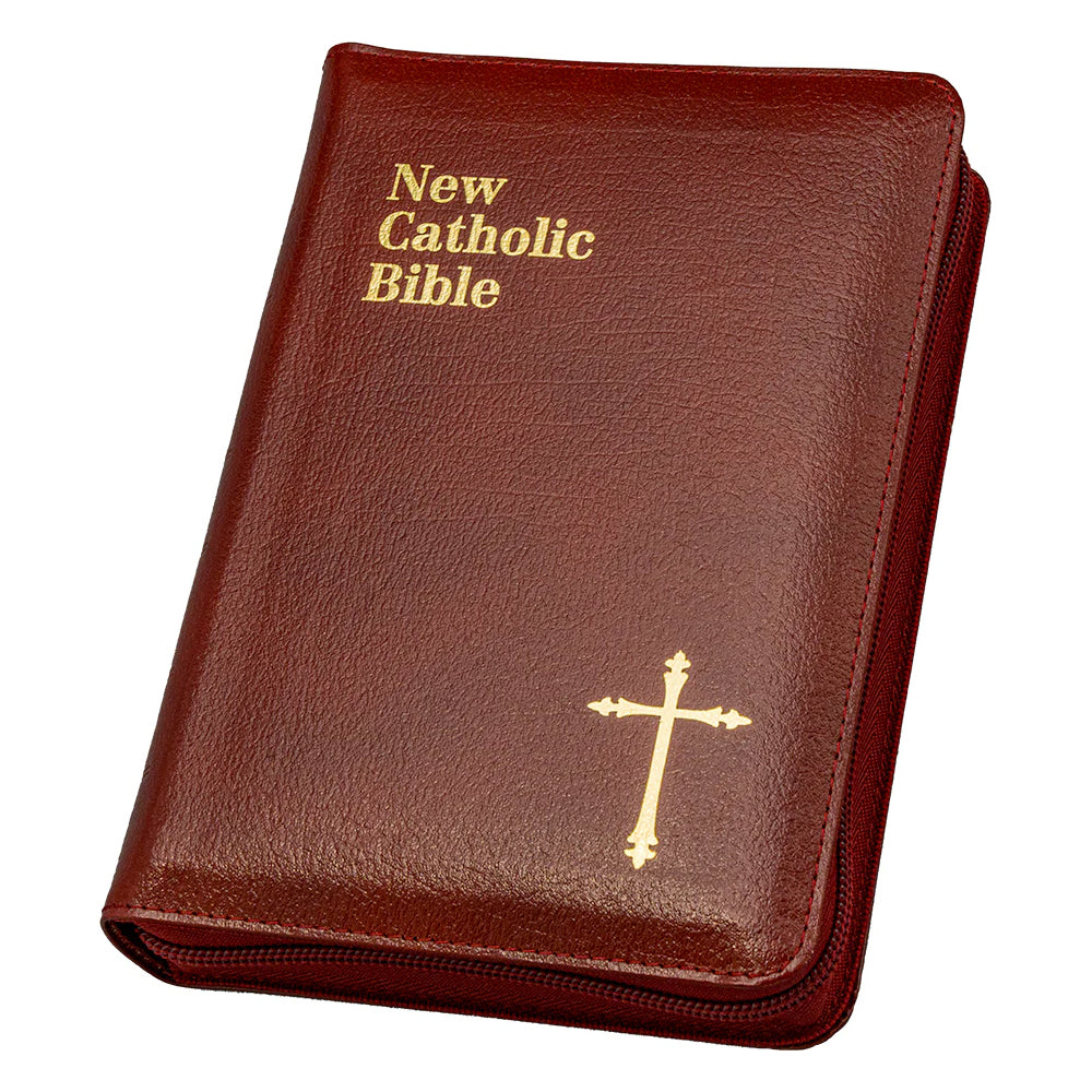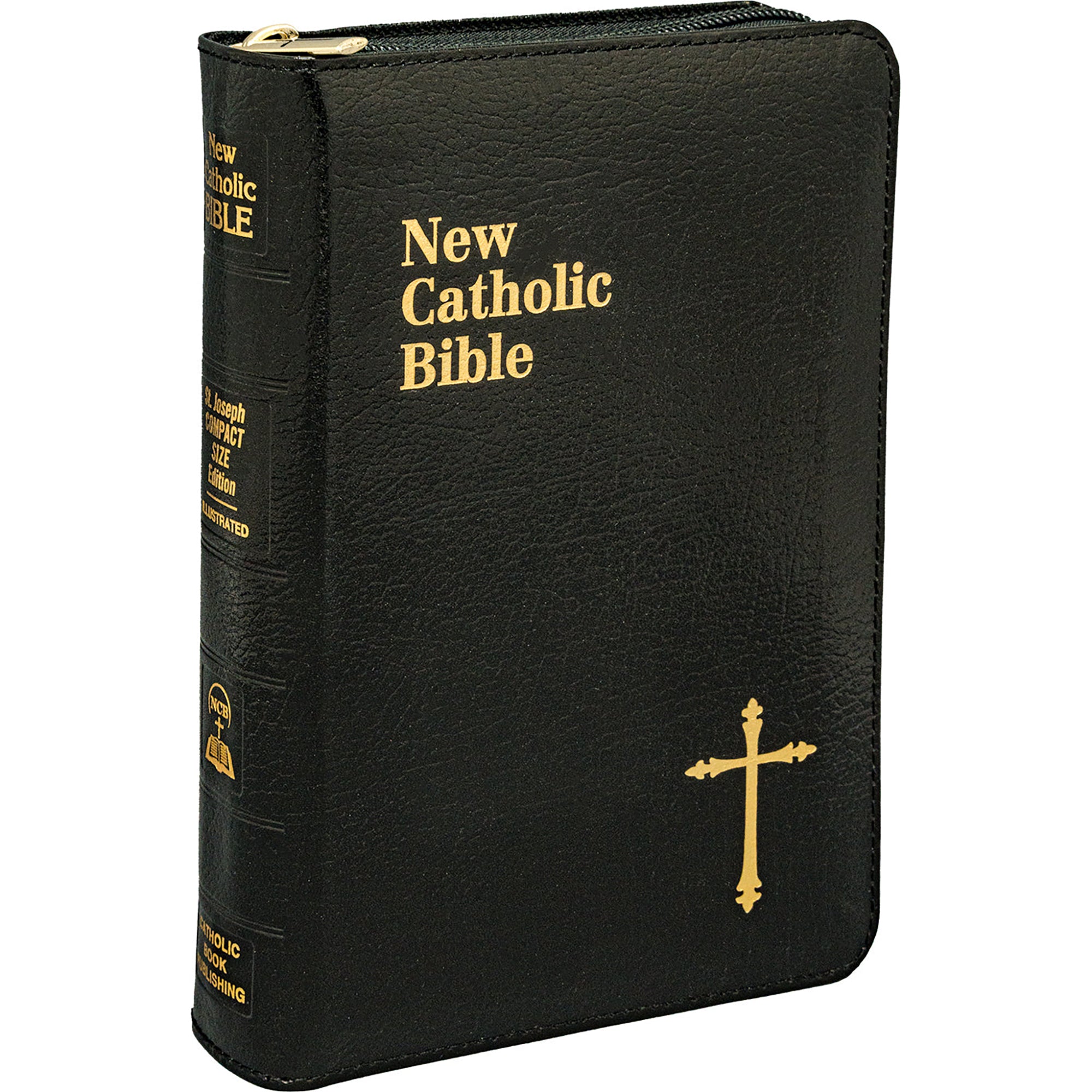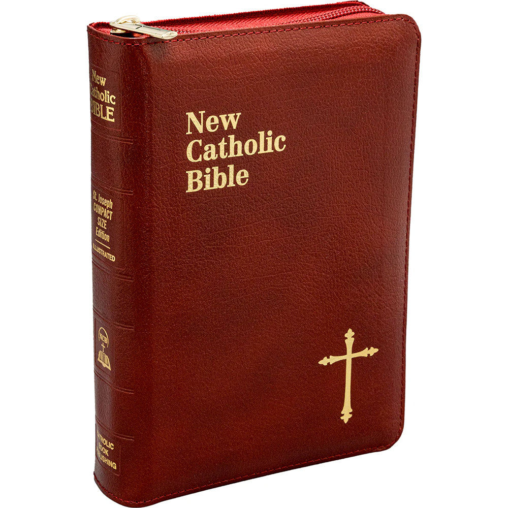 Compact Size St. Joseph New Catholic Bible in Zipper Case - Black or Burgundy