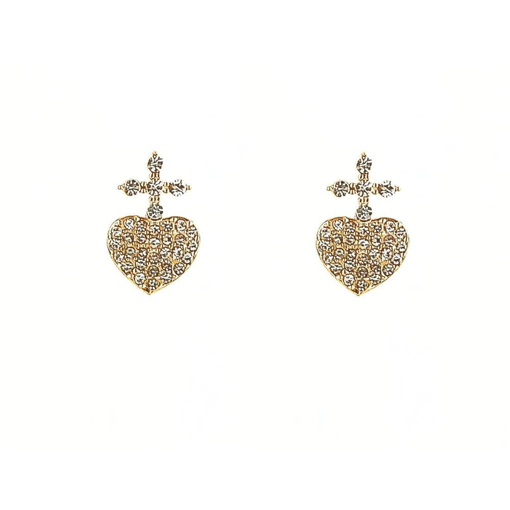 These exquisite Sacred Heart earrings combine timeless Catholic symbolism with modern elegance. Crafted in a radiant gold-tone finish, each earring features a heart encrusted with sparkling crystals and topped with a delicate cross—a striking representation of Christ’s love and sacrifice.