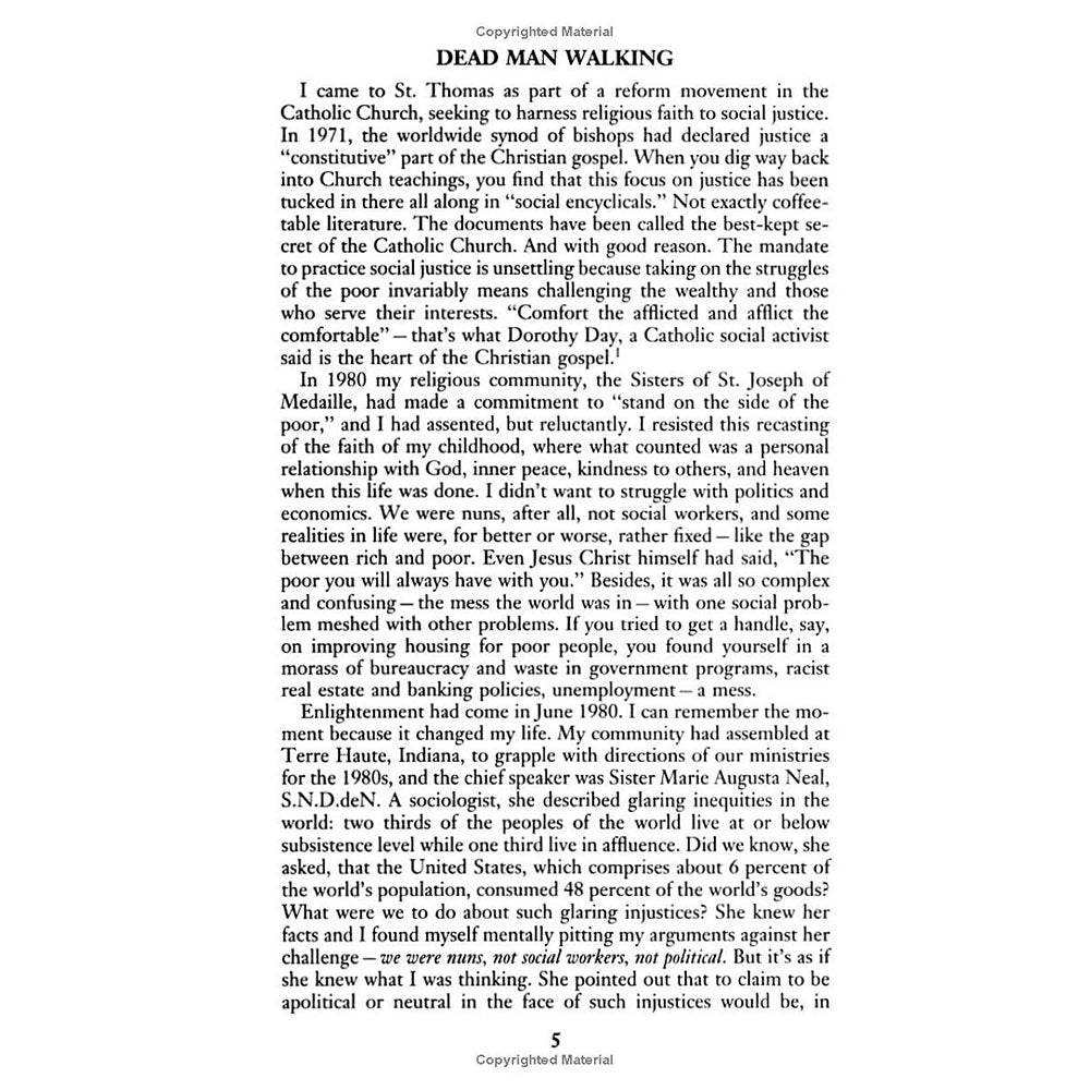 Out of that dreadful intimacy comes a profoundly moving spiritual journey through our system of capital punishment. Here Sister Helen confronts both the plight of the condemned and the rage of the bereaved, the fears of a society shattered by violence and the Christian imperative of love.