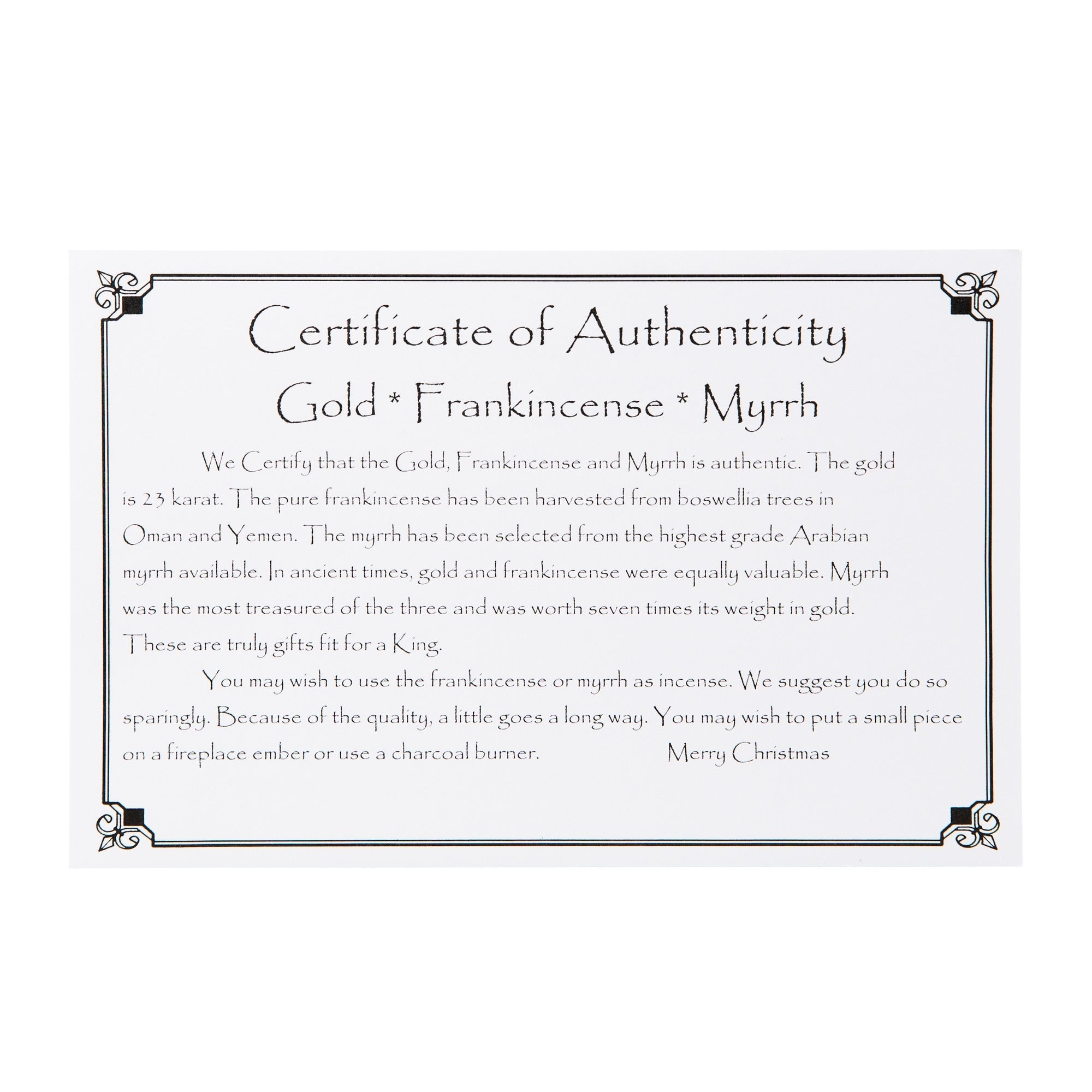 This deluxe nativity scene features all the beloved Christmas characters, along with the Original Gifts of Christmas: 23k Gold and authentic Frankincense and Myrrh. The scene includes tiny LED lights in the top of the stable. As a bonus, the back side of the scene shows the shepherds in the fields with a heavenly angel announcing Christ's birth. You'll want to display this in a place where it can be enjoyed from both sides!