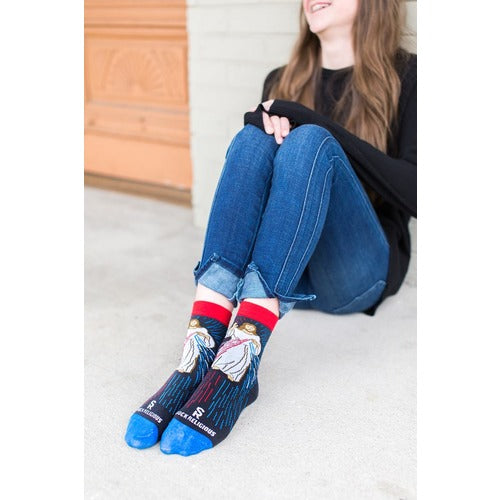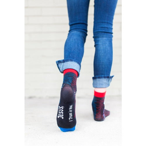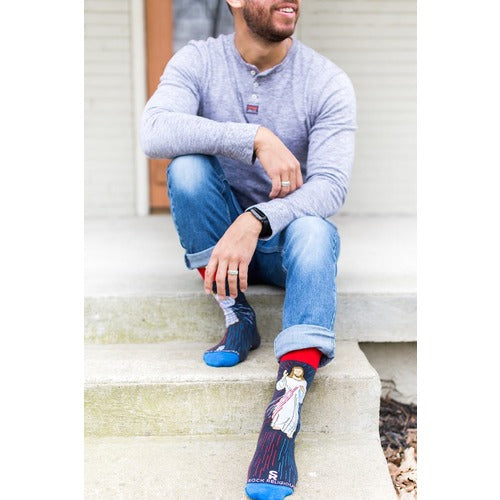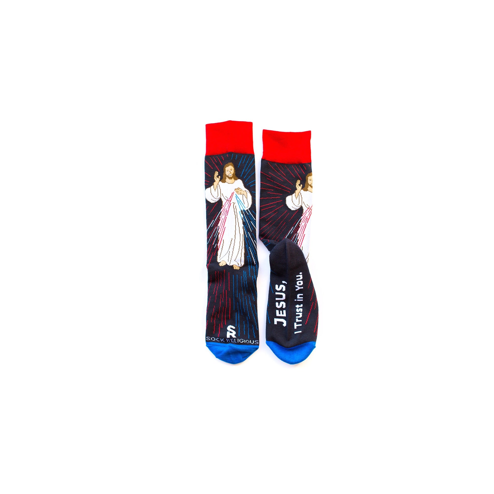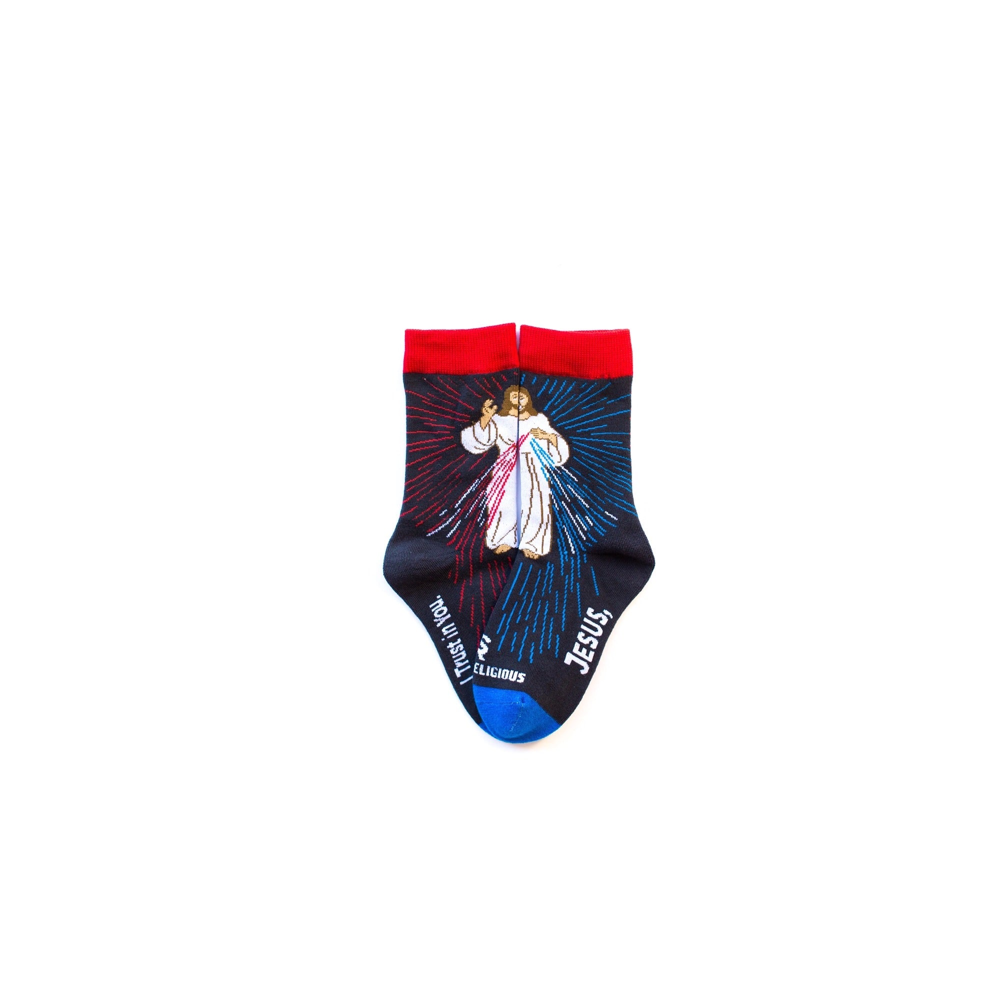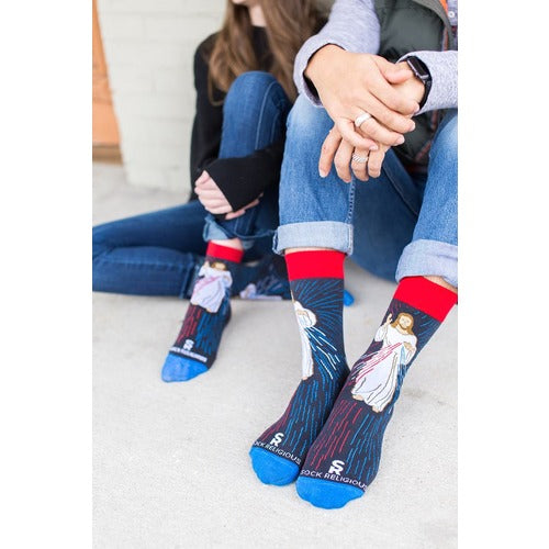 What a fun way for children to foster devotion to the Divine Mercy. Religious socks feature Jesus as the Divine Mercy as He appeared to Sister Faustina. You can wear them as a powerful reminder to spread the message of Jesus and His Mercy as you recall the words "Jesus, I Trust in You."