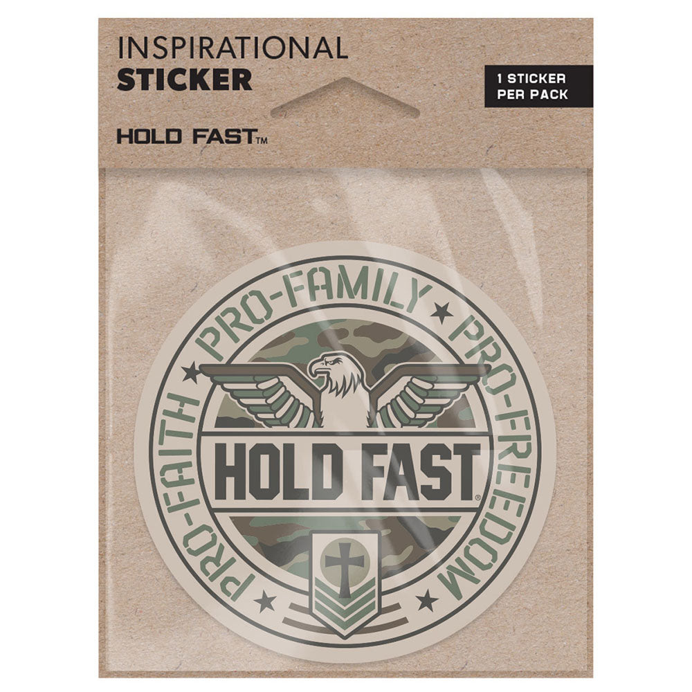 Showcase your traditional values with the Faith Family Freedom Camo Eagle Vinyl Sticker. Featuring an eagle, camo accents, and the words Pro-Faith, Pro-Family, Pro-Freedom, this weather-resistant sticker allows you to express your beliefs on water bottles, laptops, and more. A perfect gift, it stands firm in supporting your values amidst challenges. Size: 3" x 2.5".