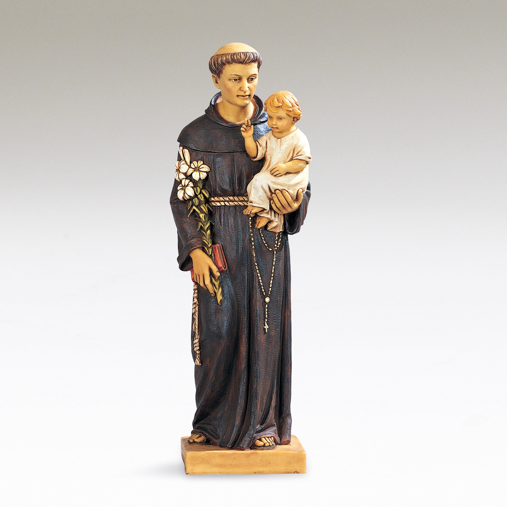 The Fontanini St. Anthony Figure stands 20 inches tall and is a testament to superior Italian craftsmanship. Hand-painted with care, this exquisite piece is ideal for adding a touch of serenity to homes, churches, or businesses. Known for quality, Fontanini ensures each figure is crafted with attention to detail, making it a cherished addition to any space. Made in Italy.