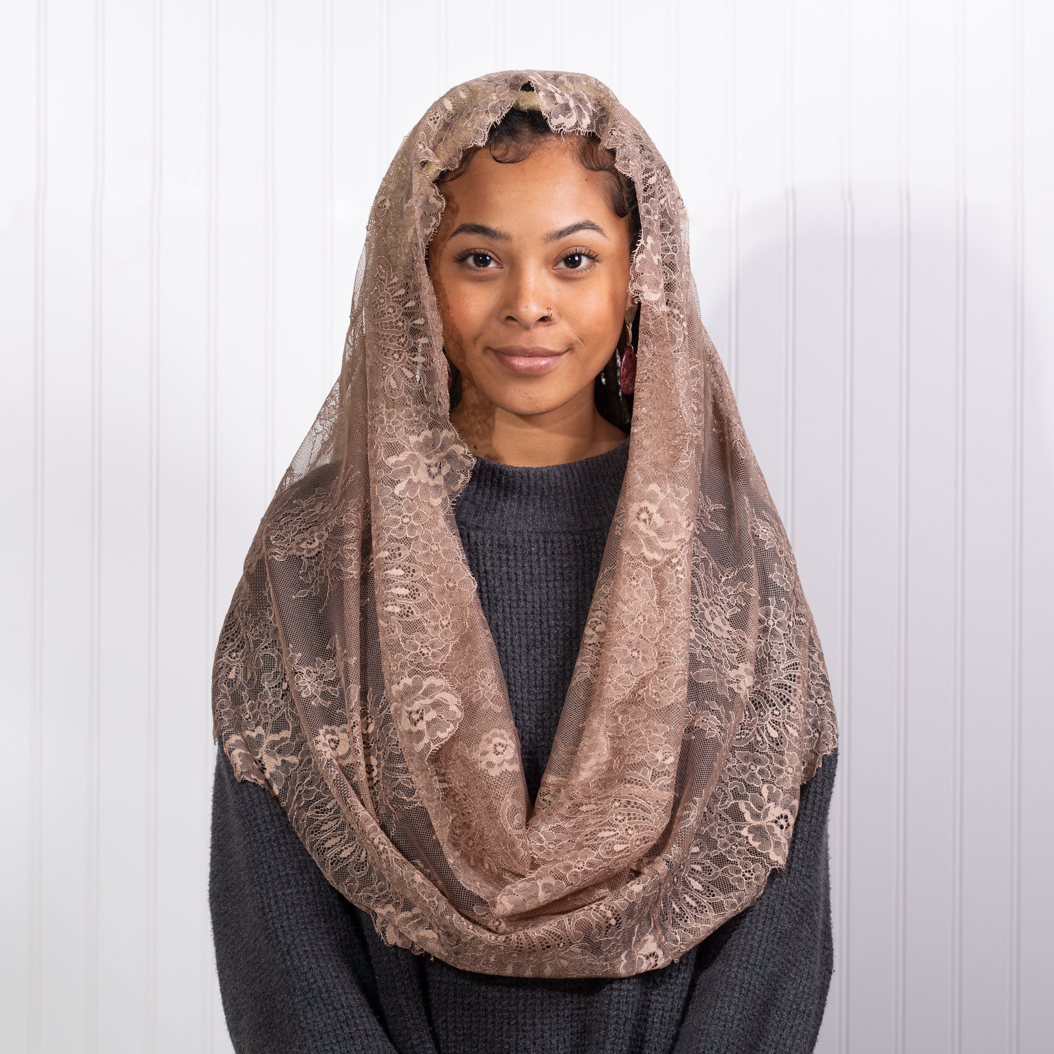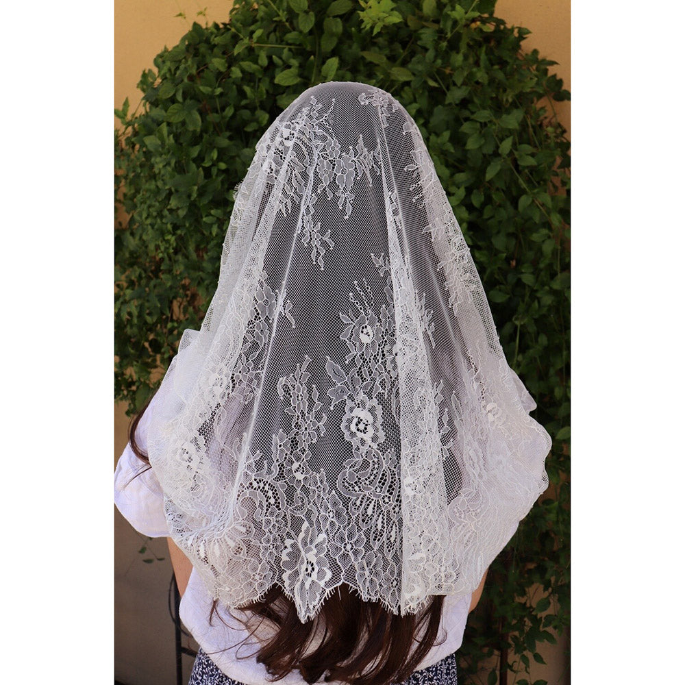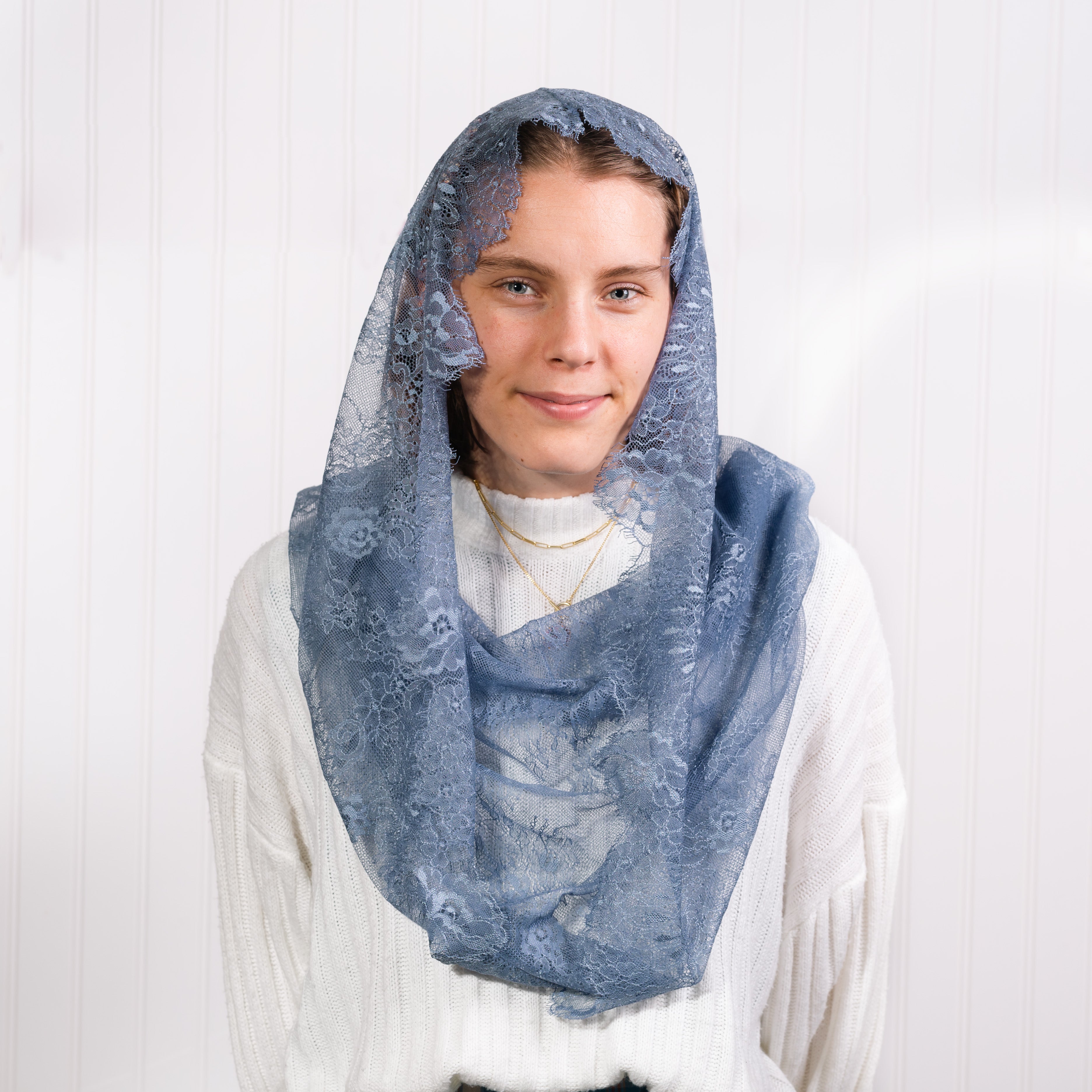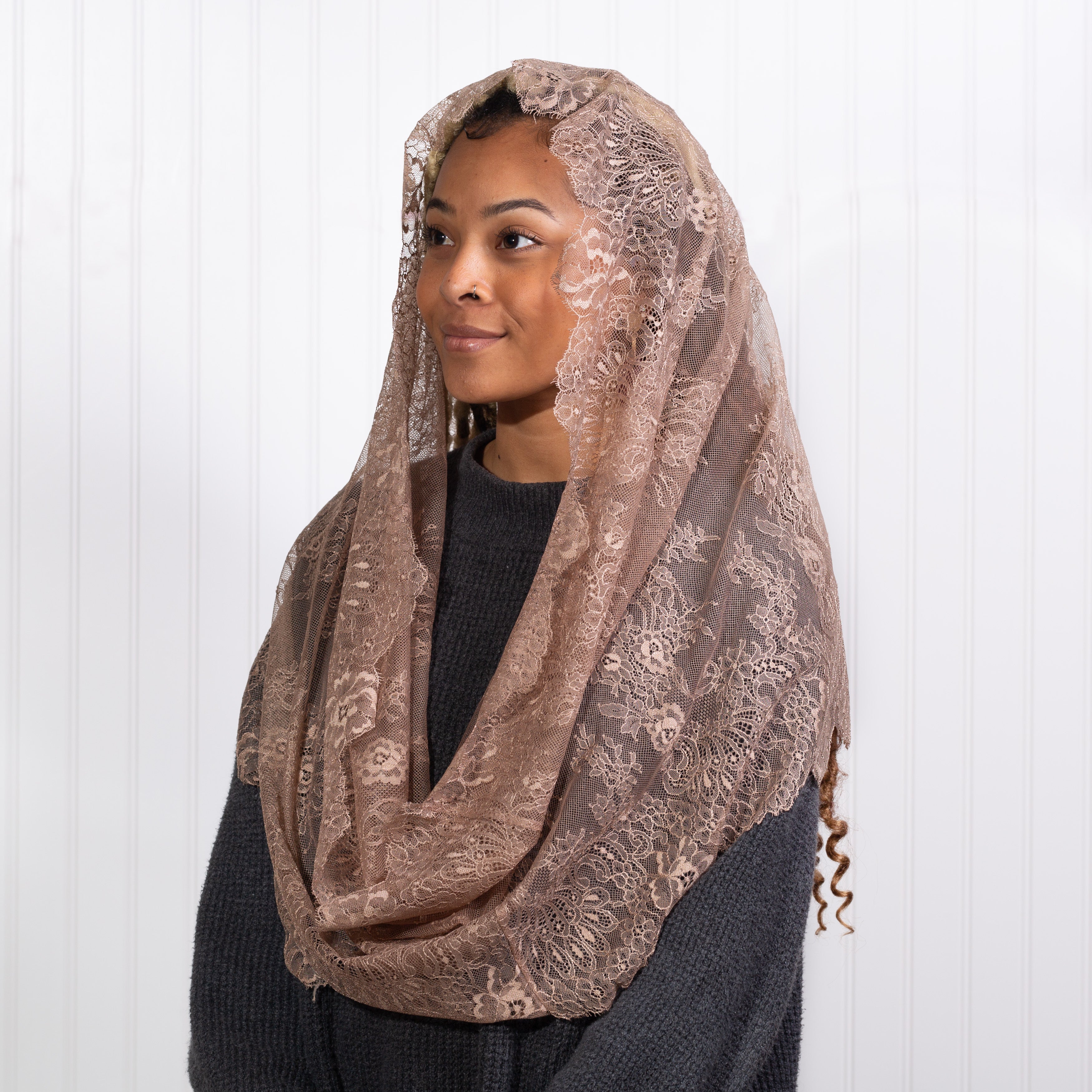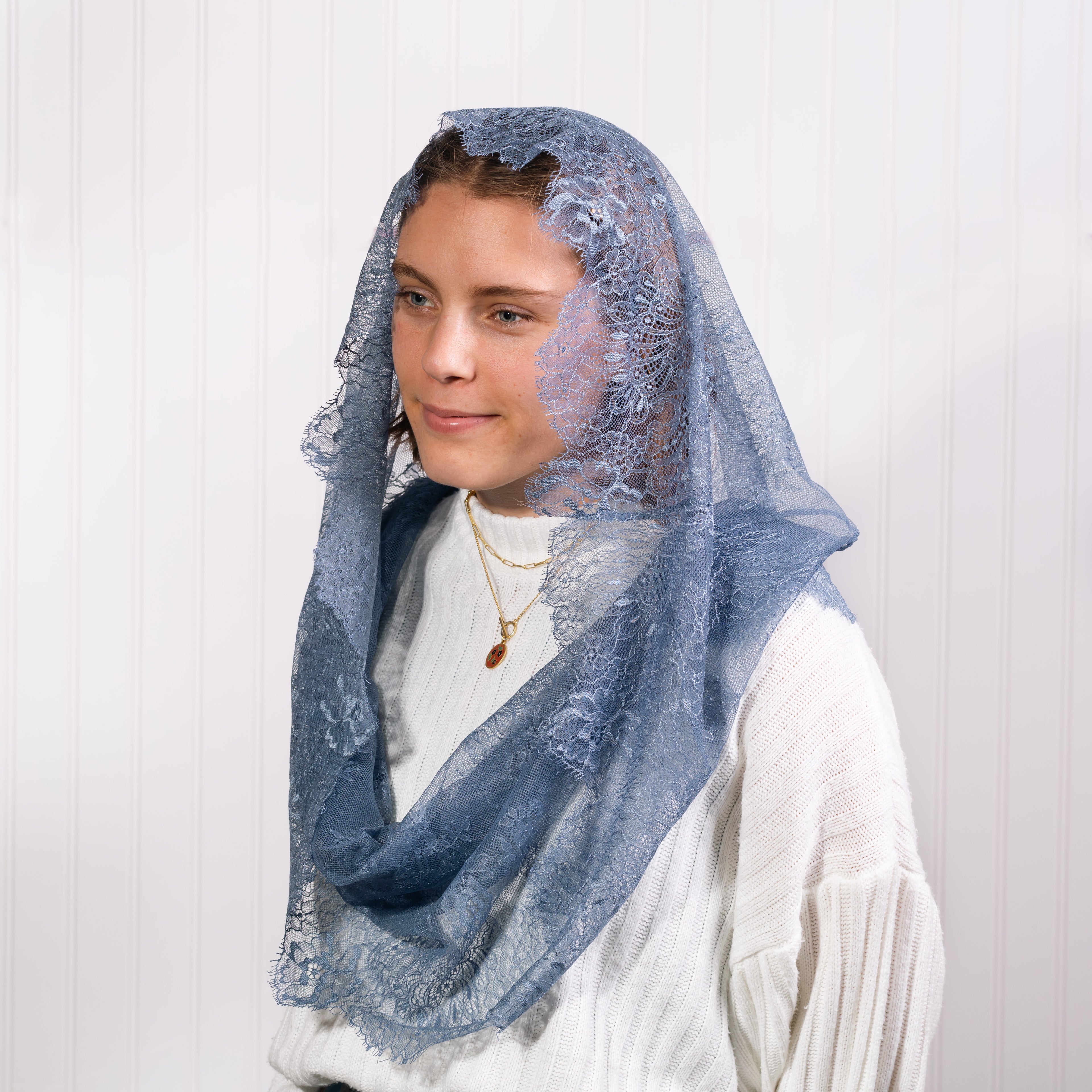 The Francisca Spanish Lace Infinity Chapel Veil is an elegant, traditional head-covering that combines intricate Spanish lace and delicate floral accents. Available in multiple colors, this veil offers a serene yet ornate style, perfect for expressing reverence at Holy Mass. Its timeless design frames the face gracefully, extending below the shoulders for modesty and humility. Choose your favorite color to complement your style.