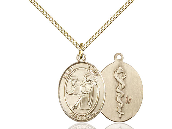The 14kt Gold Filled St. Luke the Apostle / Doctor Pendant offers a meaningful tribute to St. Luke, patron of Physicians and Painters. Handcrafted by U.S. artisans, this piece provides the look of solid gold at a fraction of the price. Sized at 3/4" x 1/2" and paired with an 18" gold-filled lite curb chain, it is tarnish-resistant and guaranteed for life.