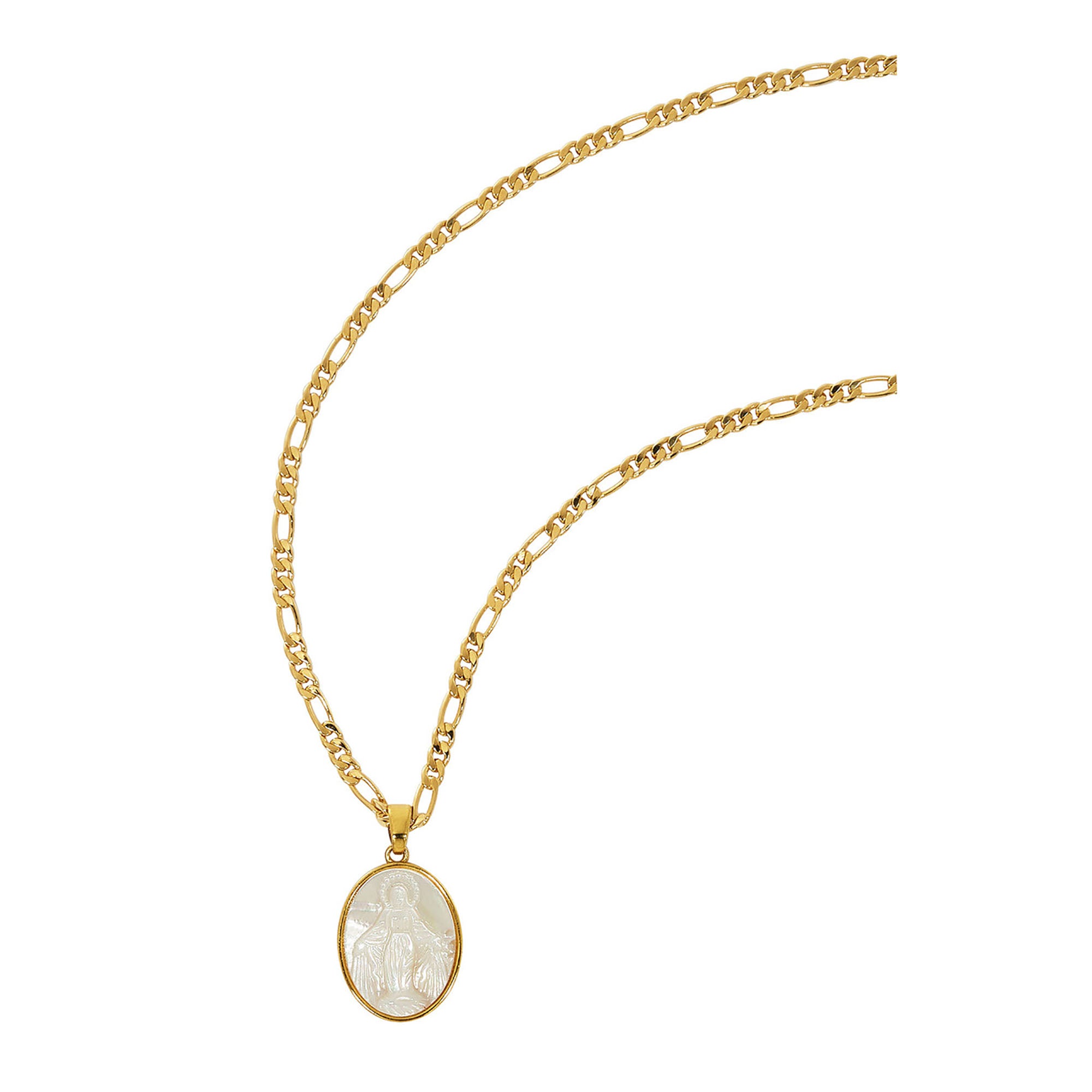 Gold Plated Mother of Pearl Our Lady of Grace Necklace - 20"