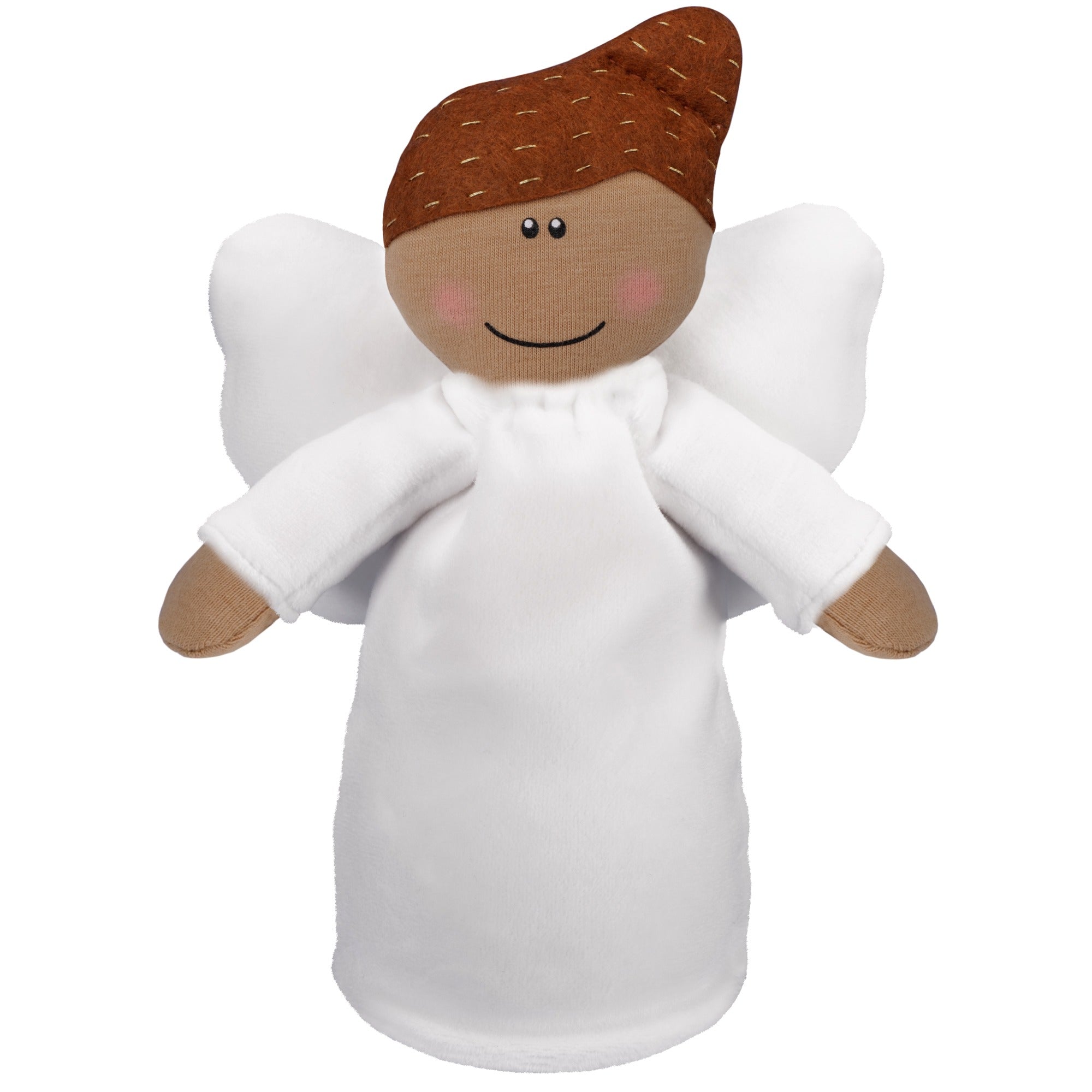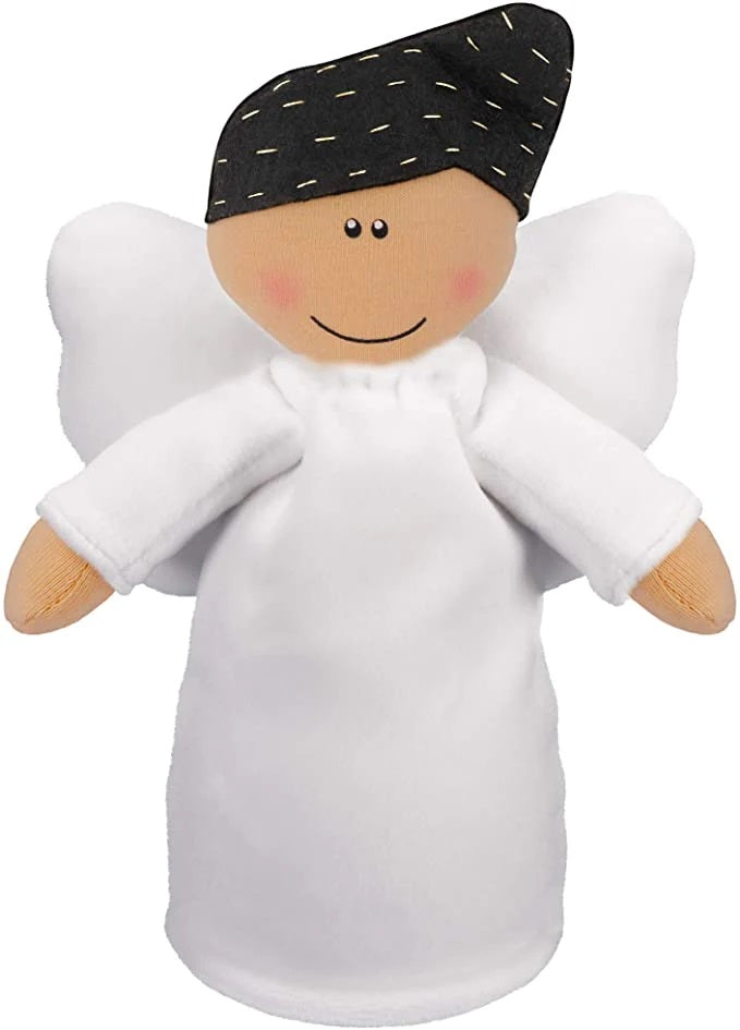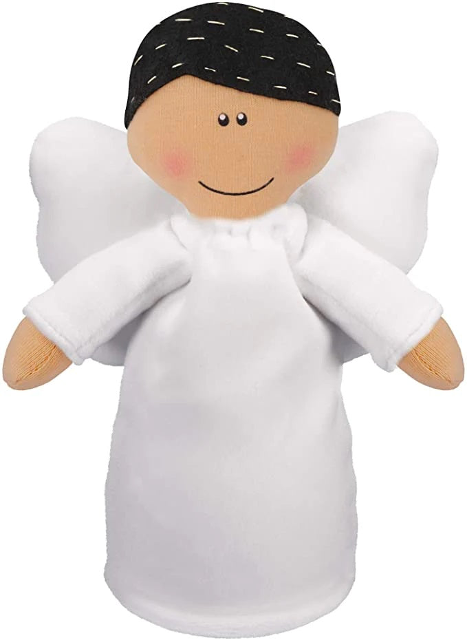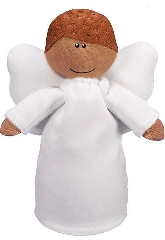 This charming Guardian Angel is a plush doll appropriate for all ages. Soft and sized for small hands, the Angel wears a white, plush gown and a caring smile. Choose an angel that resembles your child. Wonderful way to let young hearts know they are not alone. A special gift of protection, comfort and support for a child you love, and a faithful way to teach children about their Guardian Angels from a young age. Perfect gift for newborns, Baptisms, or any occasion.