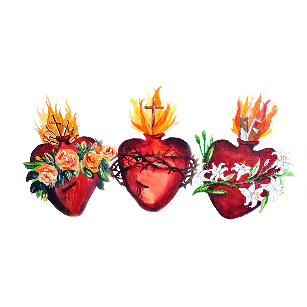 + 8”x10” Print features the hearts in the same order: Jesus, Mary and Joseph