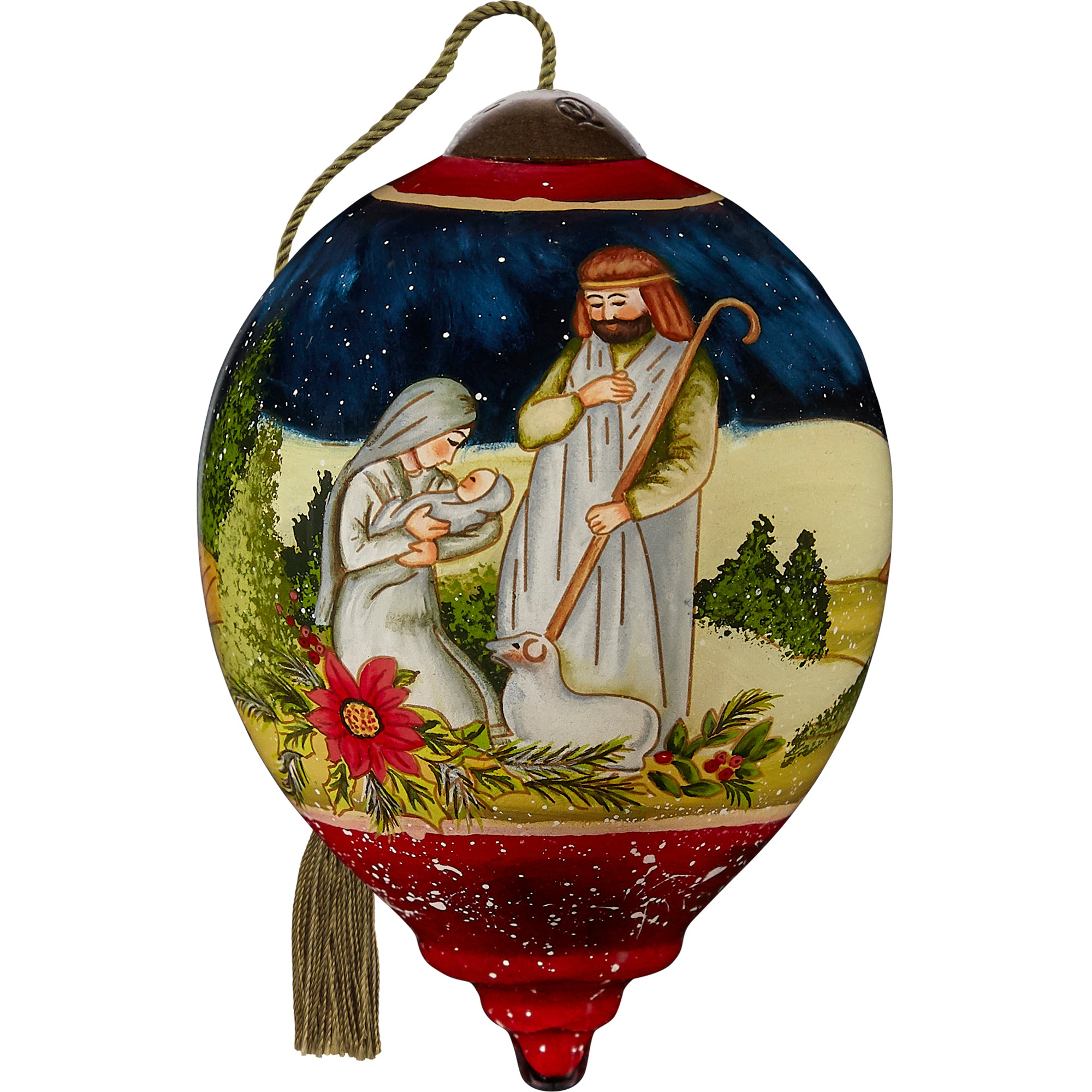 The Heavenly Peace Blown Glass Ornament beautifully depicts the Holy Family in a finely detailed Nativity scene. Hand-painted with modern lines and rich colors, this collectible comes with an adjustable tasseled cord and is presented in a satin-lined keepsake gift box. It includes a Certificate of Authenticity, making it a cherished holiday gift that honors the true spirit of Christmas.