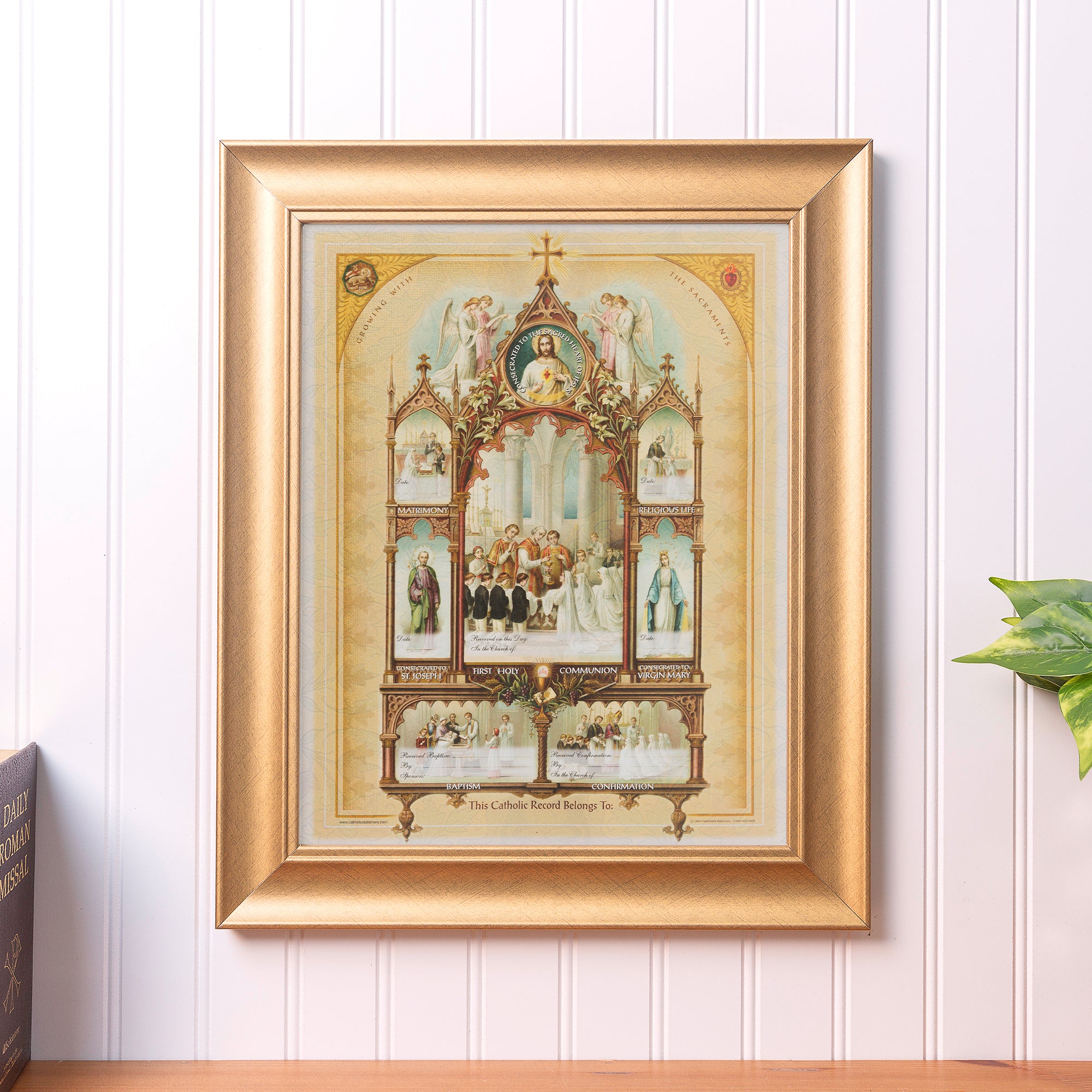 Heirloom Gold Framed Sacraments Certificate - 11 x 14