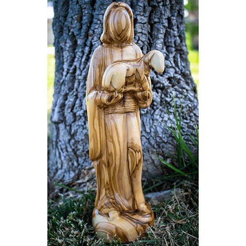 Holy Land Olive Wood Good Shepherd Statue - 10"