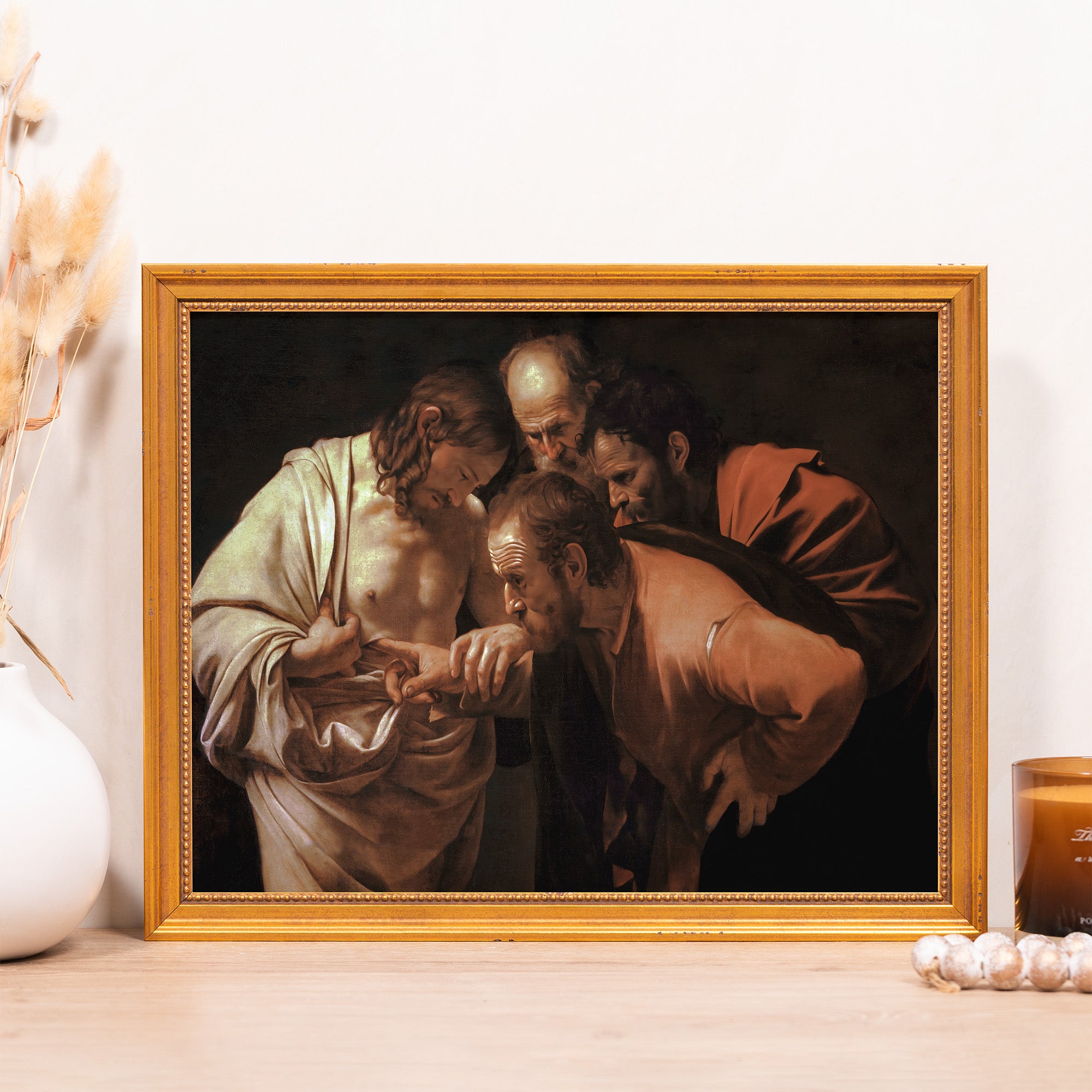 Featured here is Caravaggio's The Incredulity of St. Thomas, capturing the moment Christ invites Thomas to place his finger into the wound in His side, so that he might believe. It's a reminder of the human temptation to doubt what we cannot see, and the invitation of Christ to extend ourselves in hope and belief.