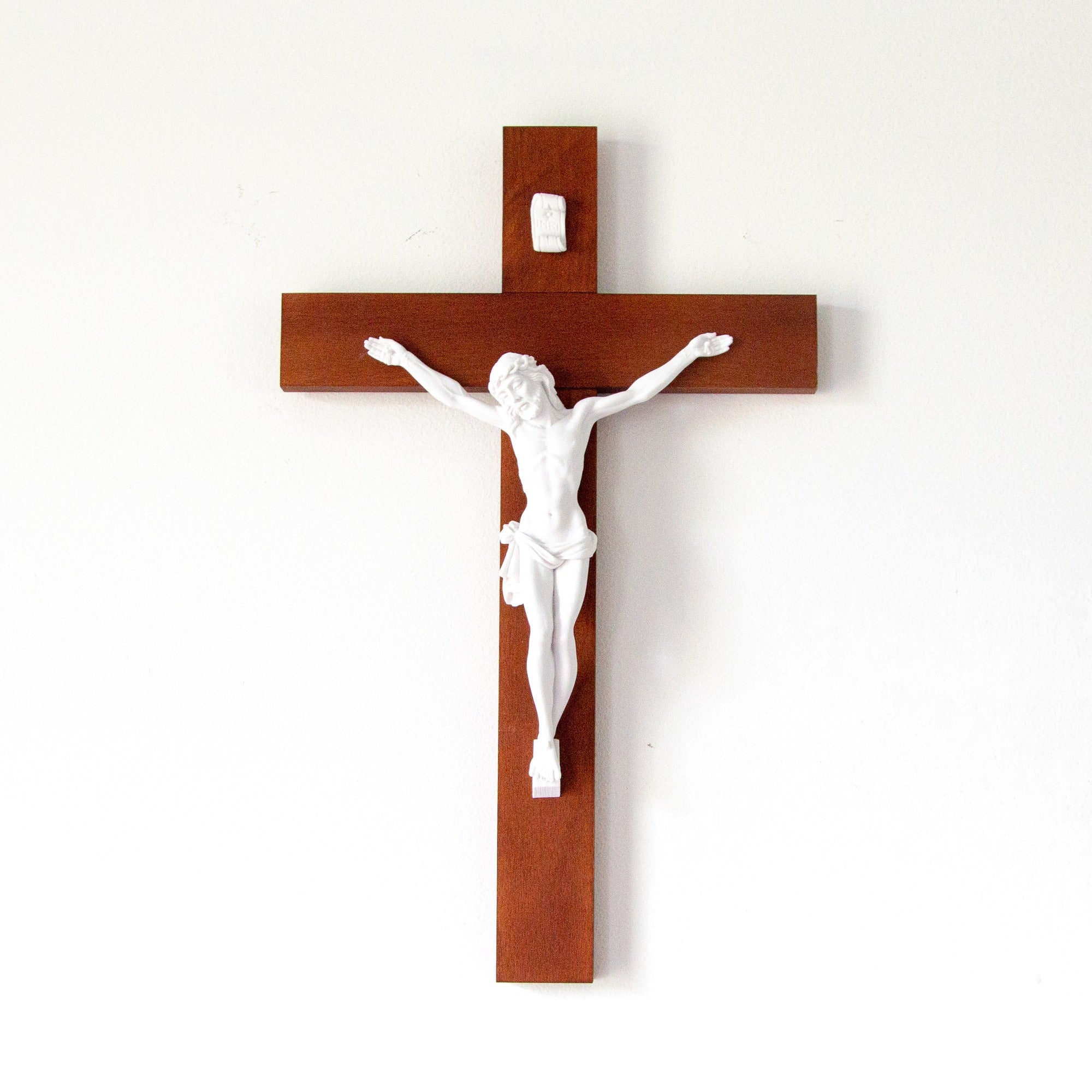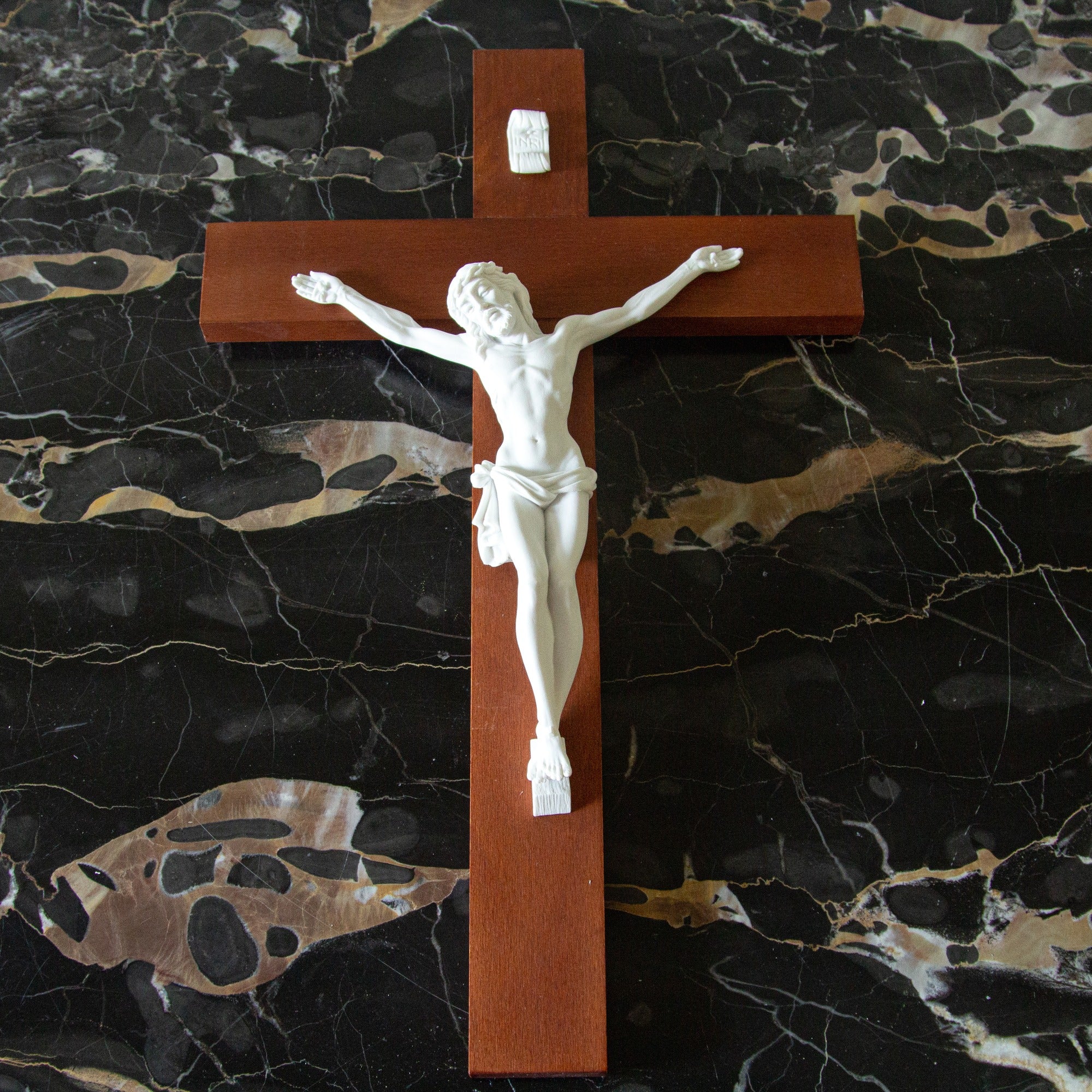 This distinctive Italian Crucifix for your home or sacred space features a white alabaster Corpus on dark, rich, beechwood for a deep and elegant look. Crafted in Italy with fine detail. Bring the infinite love of the Passion into your home with this lovely sacramental, and elevate your prayer life as you reflect upon the mystery of His love.