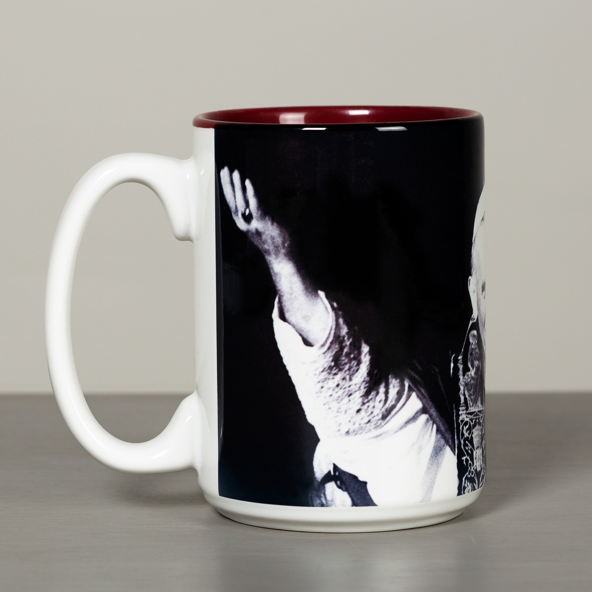 Inspire confidence with the JPII Be Not Afraid Mug, featuring a powerful quote and image of Pope John Paul II. This 15 oz. mug serves as the perfect conversation starter and motivational tool, making it an ideal gift for graduates, members of the military, and first responders. Microwave safe with a burgundy interior, it's a Catholic Company exclusive.