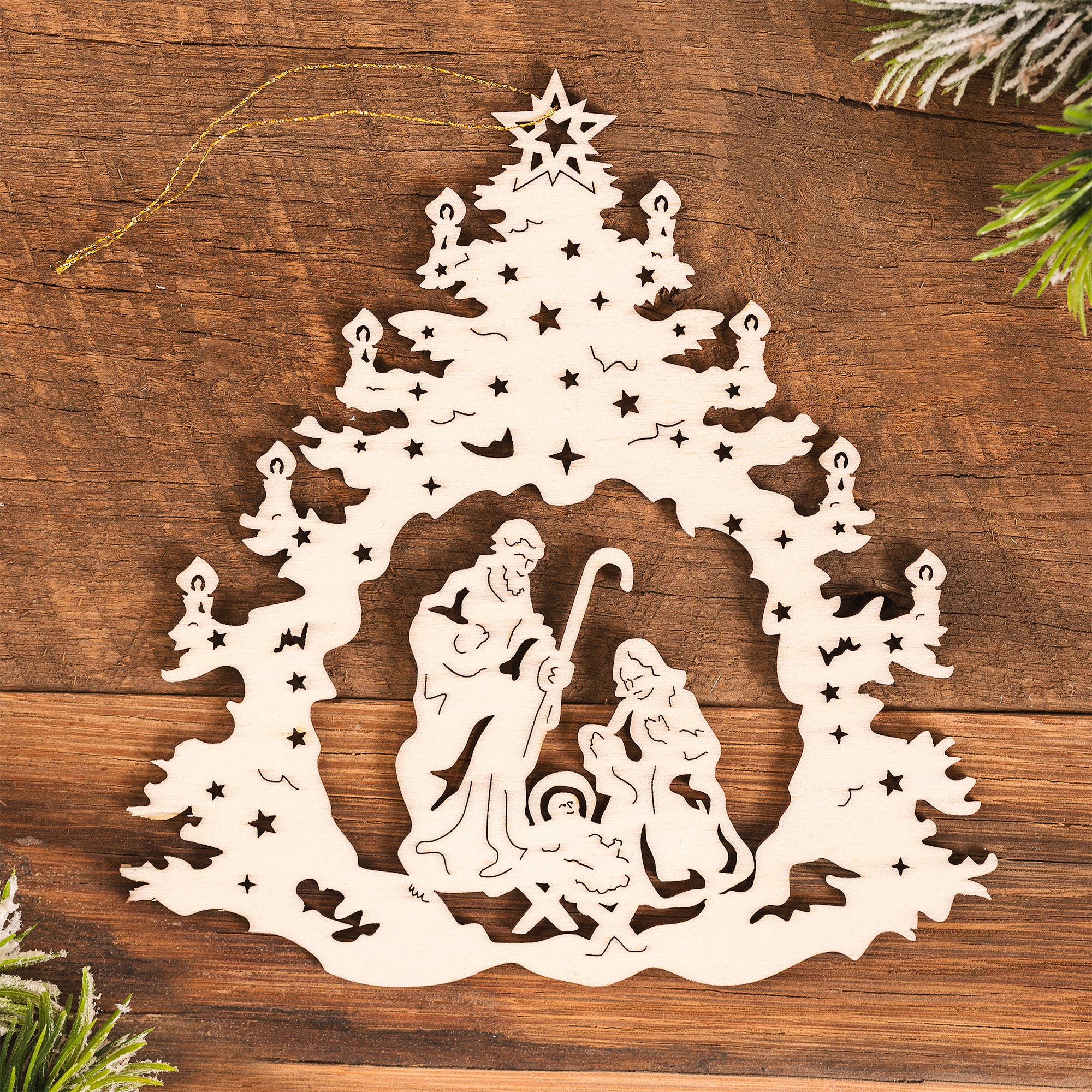 This exquisite Laser Cut Tree Italian Nativity Ornament is crafted from high-quality mountain wood, skillfully prepared and carved in Italy's Tyrol region. Featuring a festive evergreen tree design, it's perfect for your Christmas tree or as a thoughtful gift. Measuring 6" high, it can be displayed individually and includes a drilled hole for ribbon hanging.