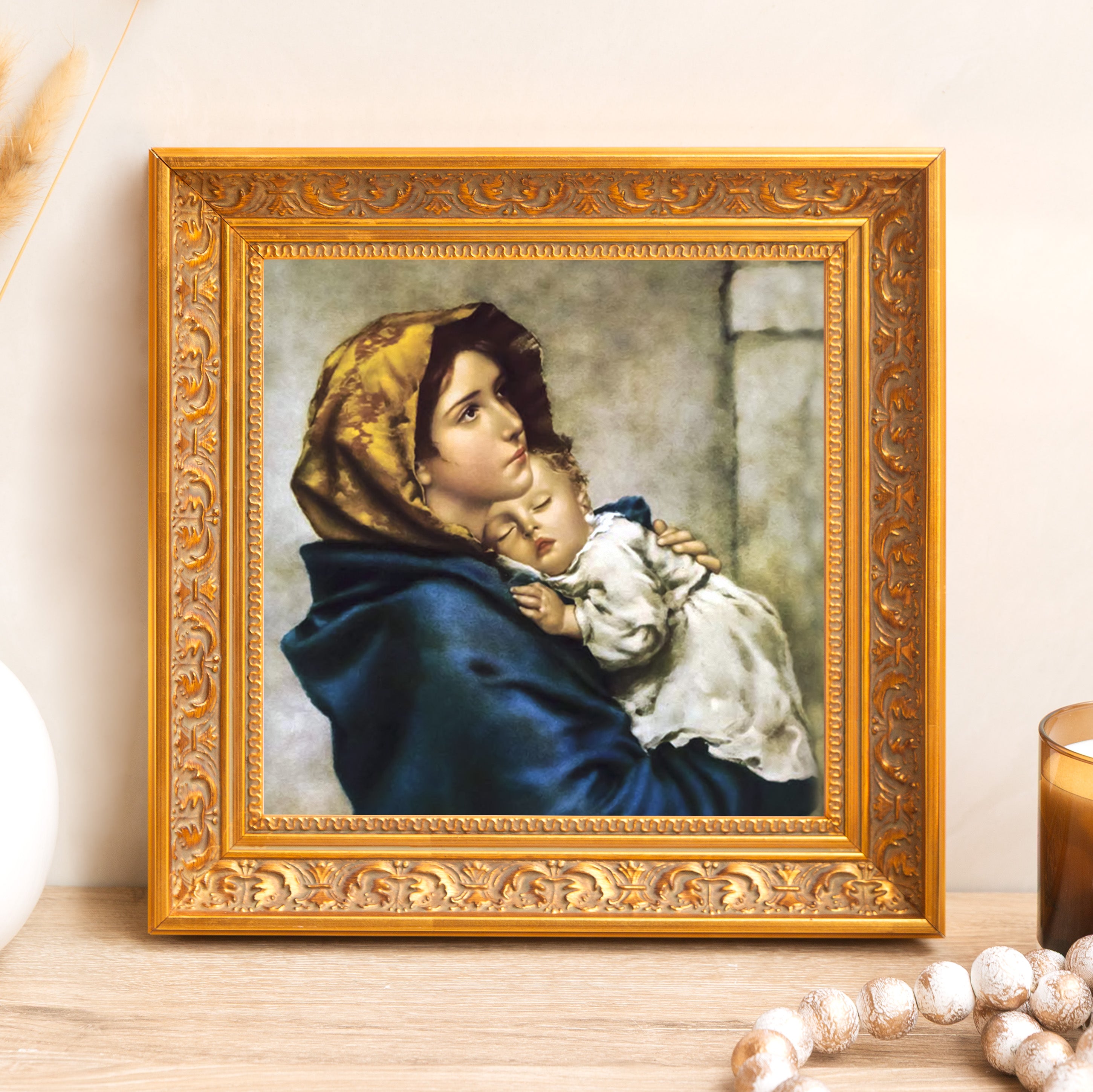 The Madonna of the Streets Framed Canvas from the Sacred Mini Collection offers a stunning portrayal of Ferruzzi's classic art, available exclusively at The Catholic Company. Handcrafted in Charlotte, NC, this exquisite piece is elegantly framed and perfect for prayer corners or as a cherished devotional gift. Choose from ornate gold or gold beaded frames to beautifully transform your space with this unique fine art.
