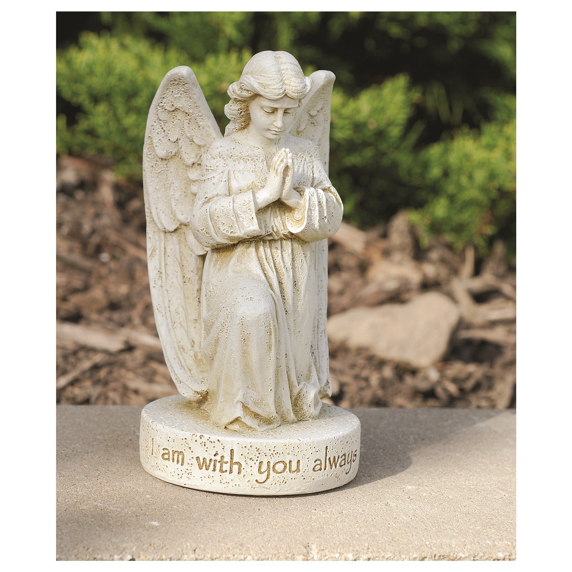 A very special reminder of your dear loved one, this praying angel figure, with her gentle and serene detailing, will add an inspirational tone to any space. Features the comforting words, "I am with you always" at the base of the memorial statue.
