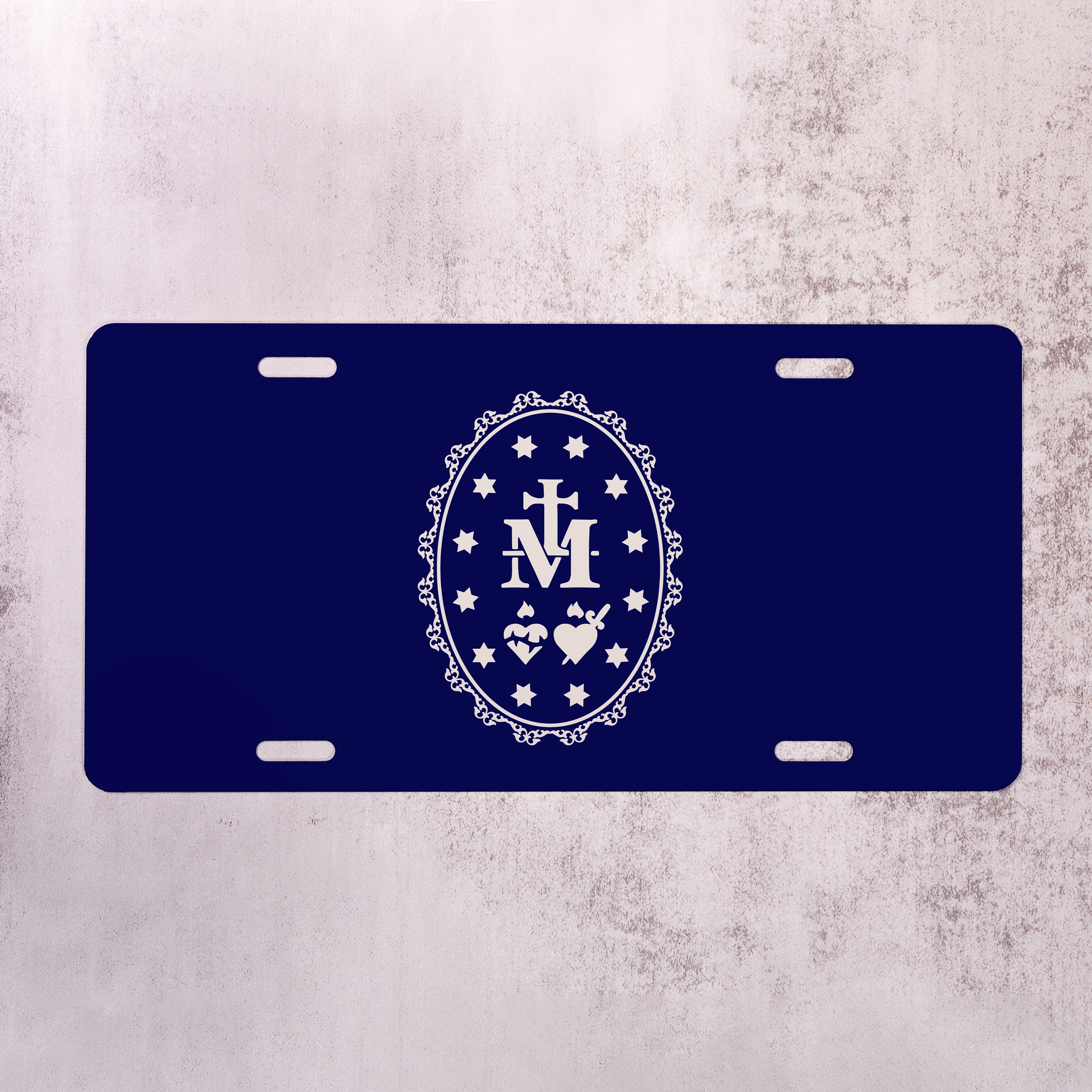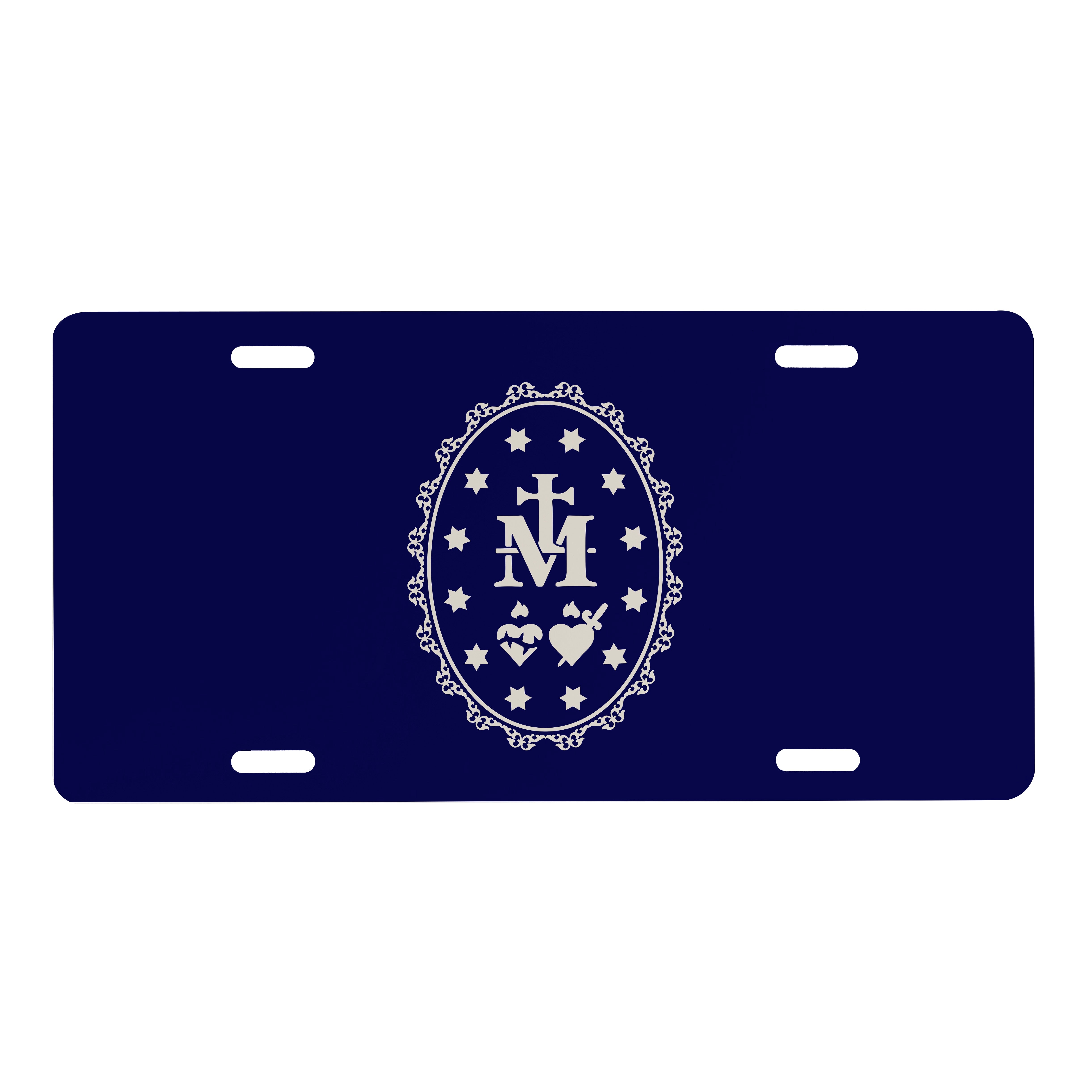 Showcase your faith with this exclusive Miraculous Medal License Plate. Featuring a bold white design against a vibrant blue background, it's a stunning way to express your belief every day. Made from durable aluminum, this 6" x 12" plate serves as an inspiring auto accessory or a thoughtful gift of faith and protection. Designed exclusively by The Catholic Company.