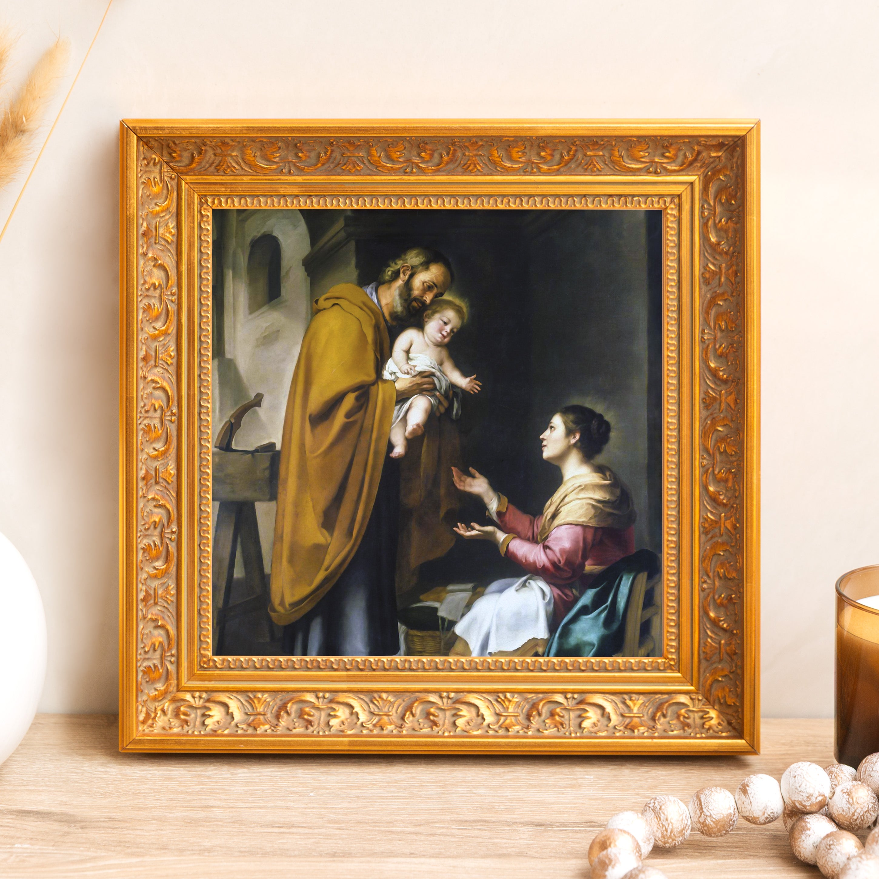 Murillo's Holy Family Framed Canvas from the Sacred Mini Collection is a captivating Catholic fine art piece, expertly hand-crafted in Charlotte, NC. Available exclusively at The Catholic Company, this exquisite framed decor features Murillo's 1660 depiction of the Holy Family. Perfect for prayer corners or as a cherished gift, the elegant frames enhance the sacred art, offering beauty and reverence to any space.