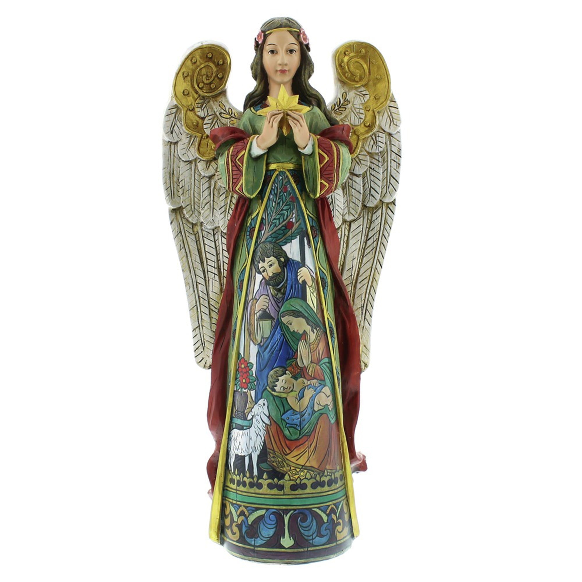 This beautifully crafted Nativity Angel Figure from the Joseph Studio collection offers a vibrant and intricately detailed alternative to a traditional nativity set. Standing at 15.75 inches tall, the angel cradles a gold star, radiating focus on the birth of Our Lord. Ideal for smaller spaces or adding a sacred touch to multiple rooms. Made from a durable resin/stone mix.